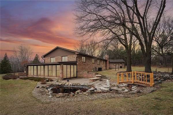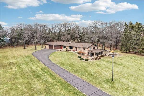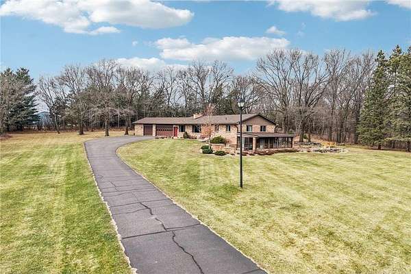Set on 40 breathtaking acres in Ramsey, this one-of-a-kind estate offers privacy, space, and unmatched versatility just minutes from the Twin Cities metro. This 3-bedroom, 2-bath custom home features over 3,800 finished square feet, multiple fireplaces, expansive living spaces, and panoramic views of rolling countryside.