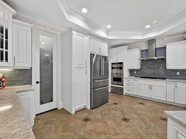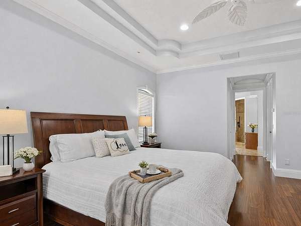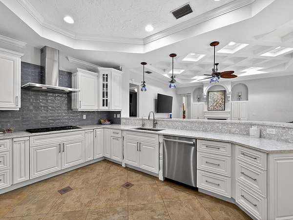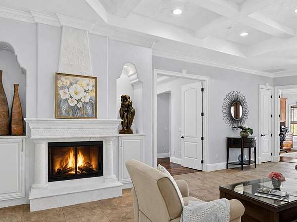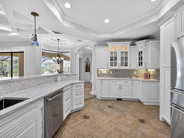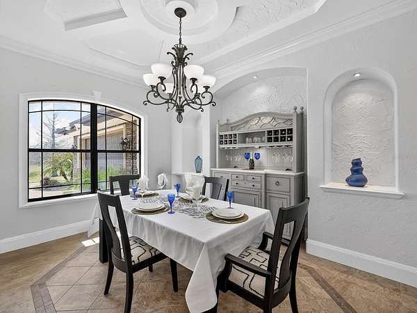 - Built-In Features, Ceiling Fans(s), Coffered Ceiling(s), Crown Molding, Eat-In Kitchen, High Ceilings, Kitchen/Family Room Combo, Solid Wood Cabinets, Split Bedroom, Stone Counters, Tray Ceiling(s), Walk-In Closet(s), Window Treatments