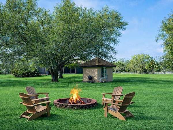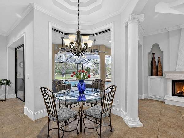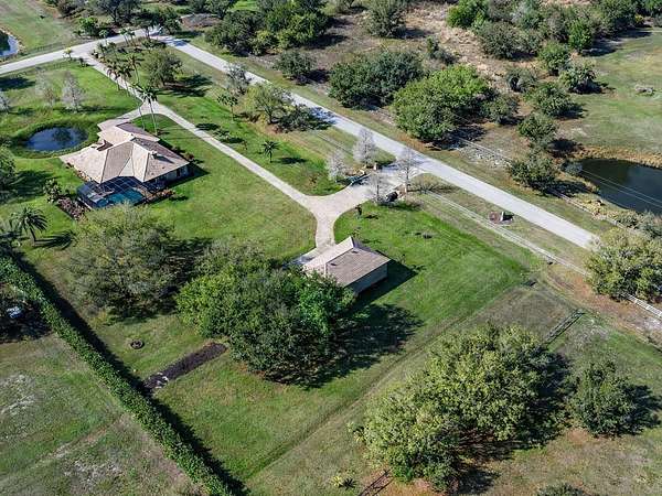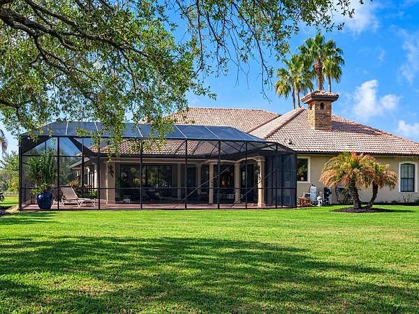 One or more photo(s) has been virtually staged. Welcome to an extraordinary, gated estate in Sarasota, FL, where nearly 5 private acres create the perfect backdrop for luxury living. This one-of-a-kind property boasts 3 gates for security & convenience. Behind board fencing, the estate ensures privacy, a long paver-brick drive, & curated landscaping. A serene pond enhances the beauty, making this an ideal retreat for those seeking space & premier amenities. A standout is the expansive detached bldg (approx. 2,100 sq. ft.), perfect for RVs, car collectors, or boaters. It offers parking for up to potentially 8 cars via tandem bays, an RV-height bay, & space for a boat or rec vehicles, accommodating up to a 34-ft boat or RV. There's a reinforced attic for storage, plus a beautifully finished guest studio apt. Ideal for multigenerational living or as an income-producing rental, this space features tile floors, crown molding, barn door, kitchenette w/ pantry, white cabinets, full bath, & independent climate control. The main residence presents a Mediterranean-style tile roof, welcoming porch w/ custom tile inset, arched dbl doors, & side-entry 2-car garage w/ resurfaced floor. Inside are 4 BRs, 3 baths, & a versatile den/study—providing flexible space for work or relaxation. Detailed ceilings, textured walls, designer/recessed lighting, ceramic tile, & wood floors add sophistication & warmth. A grand foyer w/ illuminated art niches, elegant columns, & a coffered ceiling welcomes you. Entertain in a formal dining/living area w/ stately columns, fireplace, & direct lanai access. The gourmet kitchen features white cabinets, subway-tile backsplash, lighted display cabs, premium appliances, breakfast bar, walk-in pantry, coffee bar, quartz counters, & butler’s pantry upgrade. Enjoy a breakfast nook w/ aquarium glass windows overlooking the pool, lanai, & acreage. Retreat to a warm family rm w/ coffered ceiling & fireplace or unwind in a luxurious primary suite w/ dbl doors, wood floors, triple sliders to the pool, dual walk-in closets, & spa-like bath. One add'l BR has walk-in closet, all have crown molding, & access to a beautiful guest bath w/ quartz. The separate studio apt provides a 4th bath, affording privacy & convenience for guests or extended stays. Functional spaces include laundry/craft rm (safe rm). Experience the FL lifestyle w/ an expansive covered lanai featuring a summer kitchen, granite bar, & a heated saltwater pool & spa w/ Pebble Tec finish and a new micro-mesh pool cage—ideal for entertaining or relaxing in total privacy. This outdoor oasis also grants convenient access to a pool bath w/ quartz. Deer Hammock luxury estate offers an exceptional blend of space, elegance, & security, conveniently located just east of I-75 in Sarasota County near local amenities. For added peace of mind, the estate has impact windows, hurricane shutters, a whole-house generator & 30 days propane storage, ensuring continuous comfort regardless of weather or outages. Picture cozy evenings by the fire pit under a starlit sky, w/ the excitement of bringing your horses to explore this beautiful setting. It's the perfect canvas for a dream equestrian estate! This home provides an impressive range of amenities that can't all be detailed here, making it ideal for those seeking a spacious country getaway and representing a remarkable opportunity, enhanced by deed restrictions that ensure the neighborhood’s visual appeal & protect property values.