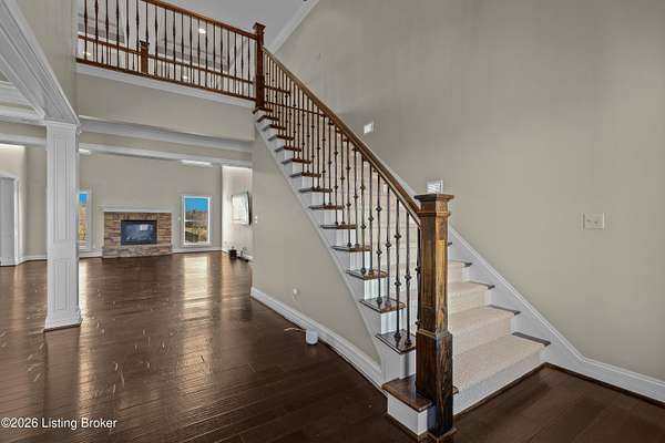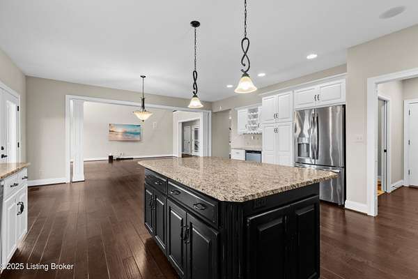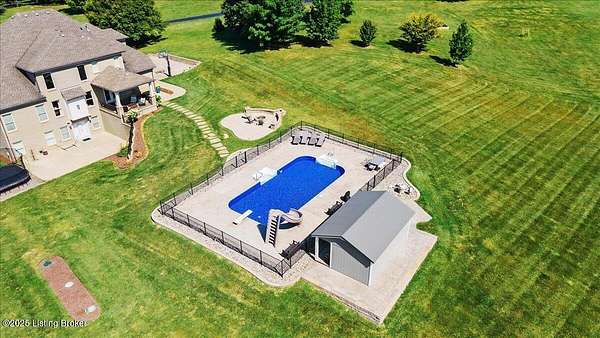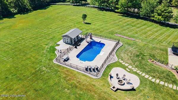 Welcome to your own private retreat in the heart of Eastern Jefferson County! This beautiful 1.5-story brick home sits on 5.4 rolling acres and is made for entertaining and everyday comfort. With 6 bedrooms, 4.5 baths, and a finished walkout basement, there's plenty of room for everyone to spread out and enjoy. Step inside and you'll find an inviting, open floor plan, a spacious primary suite on the first floor, and both first- and second-floor laundry rooms for added convenience. The eat-in kitchen is the heart of the home, featuring granite countertops, stainless steel appliances (including a wine chiller), a breakfast island, lots of cabinet space, and a big window overlooking your backyard oasis. (cont'd) It flows right into the stunning two-story great room with tons of natural light, hardwood floors, and a cozy gas fireplace. Hosting family and friends is easy with a formal dining room, a guest suite, a media room, a wet bar, and a large family room. And when it's time to relax, you'll love the in-ground saltwater pool with a diving board, slide, fenced perimeter, and plenty of space for summer fun. There's also a hot tub and both front and rear covered porches where you can unwind and take in the view, not to mention a lovely fire pit. The first-floor primary suite is a peaceful escape with his-and-hers walk-in closets and a spa-like bath featuring a tiled shower, separate vanities, and a jetted tub. Upstairs, you'll find three generous bedrooms, two full baths, a second laundry room, and a bright craft/art area. The lower-level walkout adds even more living space with two additional bedrooms (or office options), a Jack-and-Jill bath, a media room, a game area, a family room, and extra storage. This home also offers thoughtful extras like an elevator that reaches all three floors (ask agent about more details on status of elevator), a 3-car garage, hardwood floors, fresh paint, crown molding, and a full security system with cameras. With space, style, and so many amenities, this home truly has something for everyonecome see why it's such a special place!