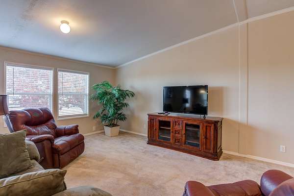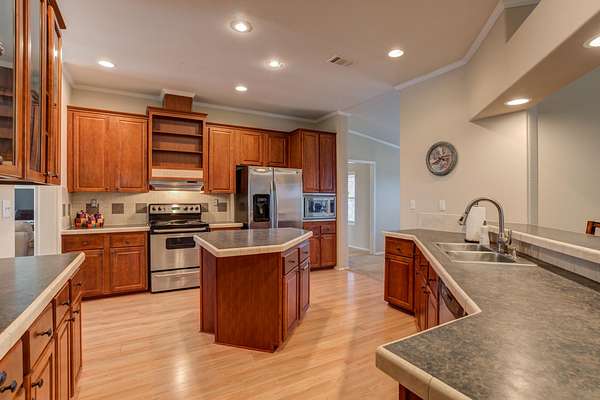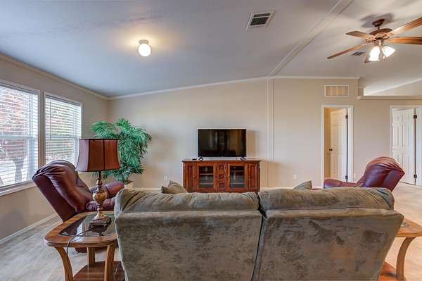Experience peaceful country living on approximately 1.8 acres with this spacious triple-wide manufactured home offering a highly functional layout and extensive interior and exterior storage. Inside, you'll find two full living rooms, including one featuring a wood-burning fireplace and large windows bringing in natural light. The centrally located kitchen serves as the main gathering area of the home, offering abundant counter space, cabinetry, and convenient access to both dining areas. Whether preparing everyday meals or hosting larger gatherings, the flow of the kitchen, dining rooms, and living spaces creates a versatile environment. The property includes 4 bedrooms and 3 full bathrooms, with an isolated primary suite positioned for privacy. The primary suite features a large bathroom with a double vanity, separate shower, and oversized soaker tub, plus a connected bonus room suitable for an office, nursery, dressing room, or additional private living space. A second isolated bedroom with nearby bath access provides flexibility for guests or other living arrangements. Outdoor features include multiple storage options, space for gardening or outdoor activities, and wide-open views typical of a country setting. Additional storage buildings convey with the property, offering room for equipment, tools, or recreational items. The adjoining lot to the north, approximately 1.8 acres, is also available for purchase at an additional cost and may be considered for added space or future use. This home provides a rare combination of interior space, flexible room use, and acreage, creating a setting well-suited to a variety of lifestyles and needs.