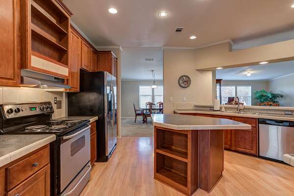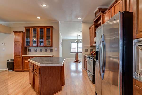 - Bar, Kitchen Island, Tile Counters, Walk-In Closet(s)