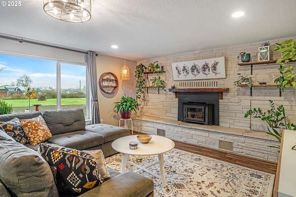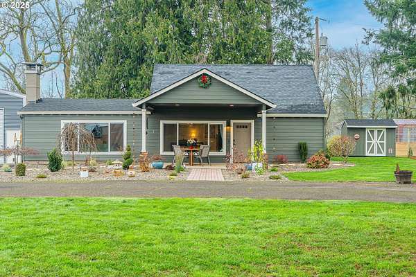 Nestled on 2.06 acres along Morgan Creek in Brush Prairie and Hockinson, this beautifully updated ranch home offers peaceful country living in a highly sought after school district. Large windows fill the home with natural light, and a dramatic floor to ceiling stone fireplace with an efficient insert creates a warm and inviting centerpiece. Interior improvements include an updated bathroom, a refreshed laundry room with tile backsplash, new upstairs flooring, and serviced mini split heating and cooling that provides year round comfort. The upstairs bedroom includes an adjacent flex space that works well as a sitting area, studio, office, or creative workspace. Outside, the property features a metal garage with lots of storage, three additional sheds, a greenhouse, a dog run, and a large fenced garden. Extensive landscaping completed over the past few years includes lush lawn areas, curated shrubs, colorful plantings, and a beautiful variety of recently added trees including apple, pear, fig, weeping willow, dogwood, and weeping cherry. A full RV pad with water, sewer, and electricity is ready for guests or long term use. Evenings can be enjoyed around the fire pit under the stars or in the peaceful saltwater hot tub. Additional improvements include a new septic system installed in February 2023, a rebuilt chimney completed in summer 2024, fresh professional exterior paint applied in May 2025, newer front fencing added in summer 2024, permanent exterior house lighting, and electronic gated access on a private drive. This property offers an exceptional blend of comfort, privacy, thoughtful updates, and natural beauty in a highly desirable location.