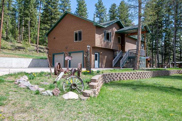 Peaceful 5-bed, 3-bath retreat on just under 5 acres with stunning views and nearby Blackfoot River access. Built in 2005, this home features an open floorplan connecting the kitchen (with granite countertops), dining, and living areas. The main level offers 3 bedrooms and 2 baths, including a primary suite with jetted tub and huge walk-in closet. The walk-out basement includes 2 more bedrooms, a full bath, and extra living space. Enjoy central A/C, an attached 2-car garage, large fenced garden area, chicken coop, detached storage shed, and spacious front and back patios. Wildlife sightings and serene privacy complete the Montana lifestyle!
