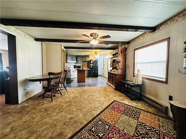 Escape to your own private country retreat with this charming 3-bedroom, 2-full-bath manufactured home, perfectly situated on just over 3 acres of mostly cleared land. Only 20 Minutes to Corning, 10 Minutes to Watkins Glen and just down the road from Watkins Glen International - this home has opportunity written all over it! Inside, you'll find a thoughtfully laid-out space featuring both a front living room and a formal dining room, offering plenty of room for both daily life and entertaining. The kitchen is a true highlight, boasting elegant quartz countertops, new flooring, a convenient center island with granite top, and a design that makes cooking a joy. The home offers three well-sized bedrooms: two smaller bedrooms ideal for guests or an office, and one very large bedroom providing extra space and comfort. Both full bathrooms are ready for use, and for added convenience, you'll find first-floor laundry access. Outside, the property truly shines. Enjoy the peaceful surroundings from your large front porch. The property also features a detached garage with a workshop for hobbies, storage, and projects, as well as a practical root cellar for preserving goods. With ample space indoors and out, this is the perfect opportunity to embrace a quiet, independent lifestyle.