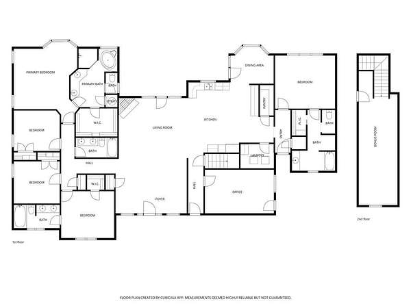 - Bathroom x 4, Bedroom x 5, Bonus Room, Library, Office