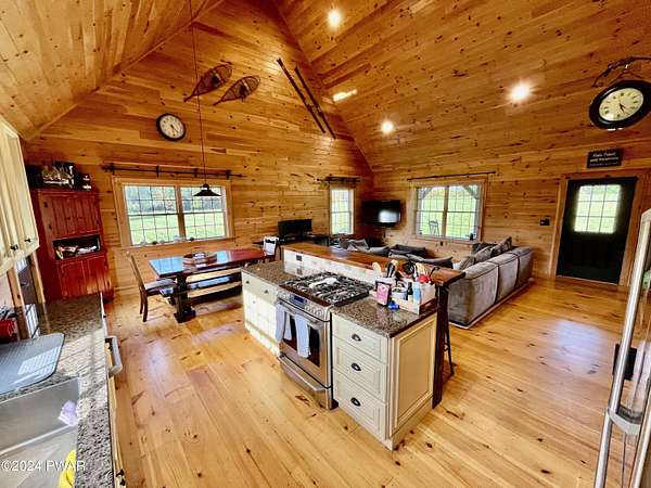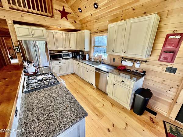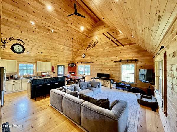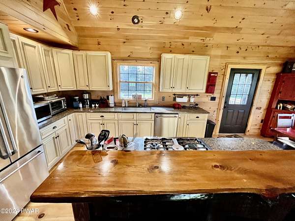 WELCOME TO THIS STUNNING 13+ ACRE RUSTIC COUNTRY RETREAT THAT HAS IT ALL! This property is perfect for those seeking both space and adventure. The spacious open floor plan features 4 bedrooms, 2 1/2 bathrooms and includes a beautiful loft area where the Primary suite is located, complete with a full bath room and a walk-in closet, overlooking the gorgeous Kitchen, dining and living areas below. The kitchen is a chef's paradise, boasting stainless steel appliances, granite countertops and plenty of space to create culinary masterpieces. The fully finished walkout basement with a game room provides even more space for relaxation and entertainment. Property comes complete with an awesome large steel building, impressive garage/workshop which is perfect for the hobbyist or professional alike. With ample space, it's ideal for projects, storage, and all your tools. Whether you're a car enthusiast, a craftsman, or just need extra room for your gear, this versatile space is equipped to handle it all in style and comfort. Outside enjoy the serene privacy of lush green grass, the sportsman's range , majestic willow trees, charming gazebo to unwind or just head over to the awesome fire pit for evenings under the stars. The property also boasts a huge two-car attached garage! Located is in a prime area for outdoor enthusiasts, the property is close to Elk Mt. ski area, numerous State Lakes and Lands. Close to Honesdale & Forest city for shopping. The O & W Trail provides access to walking, biking, ATV, (Side-by-Side's) and snowmobile trails right from your yard. This is the ultimate country getaway--look no further, your dream home awaits!