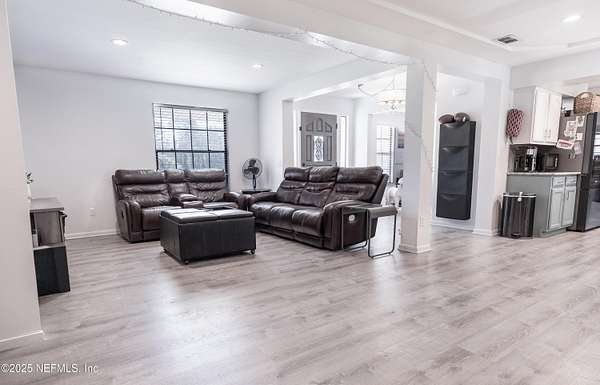 Beautiful move-in-ready remodeled 4-bedroom, 2-bath ranch-style home tucked away on over 1.5 acres of a serene, fully fenced paradise with no HOA. Step inside to 2,228 sq ft. of warm, inviting living space designed for comfort and style. The spacious primary suite is a true retreat, featuring dual closets, dual sinks, offering a peaceful place to unwind. The versatile 4th bedroom has its own private entrance, making it perfect as a guest suite, home office, or creative studio. The open-concept living area flows effortlessly onto a charming screened brick patio and an adjoining outdoor space-ideal for BBQs, entertaining, or simply enjoying your morning coffee in the fresh air. Outside, the property is a nature lover's dream. Surrounded by mature palms, fruit trees, and lush greenery with a private pond and deck - you'll feel worlds away in your own private oasis. Additional features include HVAC(2024), Water filter system(2024), Well(2024), Roof(2018). Located in a quiet, peaceful area, this home offers the perfect blend of privacy, comfort, and functionalityall within a beautifully landscaped setting. Come experience the lifestyle you've been looking for. This one won't last!