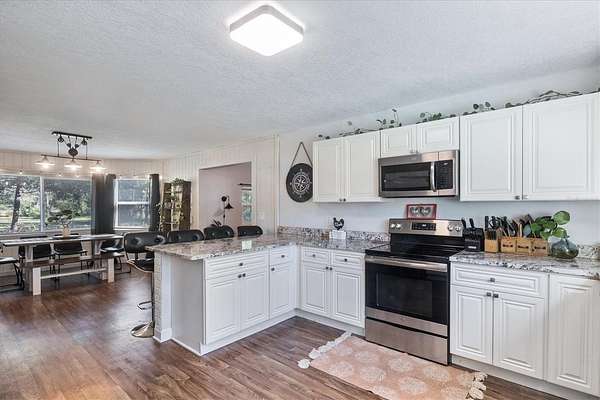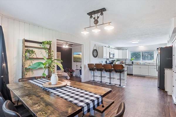 Short Sale. Tired of the traffic and congestion? Ready for the Florida farmhouse of your dreams? This stunning four-bedroom, two-and-a-half-bath is located on over 2.4 acres in tranquil and historic Arcadia. Pushed off the main road hidden between the southern oaks and pines, you'll be transported to your own country oasis in seconds. Taking your first steps toward the home, the large wrap-around porch greets you before entering through the front door into the foyer. Once in the foyer, you'll find your half-bath and an elegant fireplace bridging country with modern. To the right, you will find the main living space with beautiful shiplap walls and natural wood-like vinyl flooring. To the left, your spacious eat-in kitchen with an attached dining and breakfast bar will welcome you with natural light, beautiful white cabinetry, and stainless steel appliances. Tucked away in the kitchen is a spacious and separate laundry room, and off of the eat-in dining room, you will find a second living space or lounge area. All four bedrooms are located on the home's second floor, along with your guest bathroom. Your owner's suite is complete with an attached en-suite and is illuminated by the large bay windows that face out the front of your property. Enjoy comfort and security with hurricane-rated windows; this home stayed high and dry during the last hurricanes!
