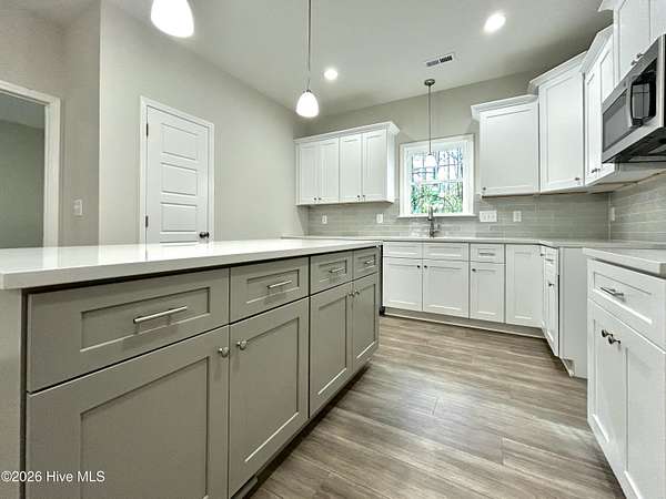 $12,000 BUILDER INCENTIVE + 3.99 Rates Available* Welcome to the Owen Plan -3 Bedroom+ 3 Full Bathrooms + Bonus Room / Office that could be used as a 4th Bedroom. Beautiful ranch-style home featuring an open-concept layout with two owner's suites and a flexible office/bonus room with closet. This thoughtfully designed home includes a quartz island kitchen with soft-close cabinets and designer hardware, laminate flooring throughout main living areas, and a spacious living room with fireplace. The primary owner's suite offers dual vanities, soaking tub, walk-in shower, linen closet, and tray ceiling. A second owner's suite provides flexibility for guests or multi-generational living. Additional features include a separate laundry room with storage closet, two-car garage, covered front and back porches, and backyard overlooking a wooded buffer. Homes in Walnut Run include quartz countertops, laminate flooring in main living areas, and soft-close cabinetry. Convenient location with easy commute to Jacksonville, Greenville, Goldsboro, Seymour Johnson AFB, and UNC Health. Builder offering $12,000 credit that may be used toward closing costs, rate buy-down, or upgrades (subject to terms and conditions). Make your next move, your best move and Schedule your private showing today.