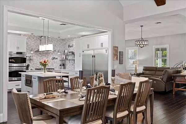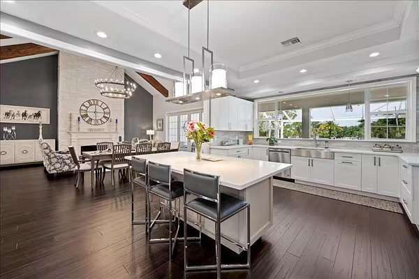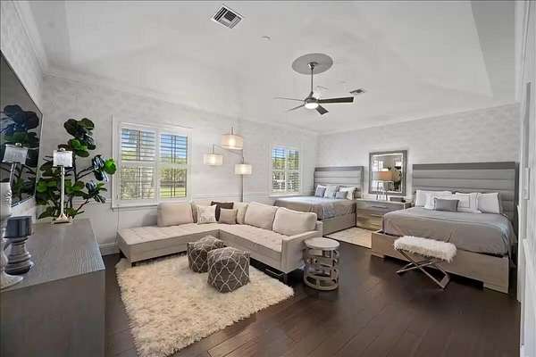 Experience elegance and luxury in this 5-bedroom family home in Wellington's prestigious Paddock Park II. Perfect for your seasonal getaway, the residence sits on 1.52 acres in a fully fenced property with lush palms, offering a resort-style heated pool, jacuzzi, and expansive outdoor areas. Inside, discover 4,000 sq. ft. of Southern charm with a gourmet eat-in kitchen featuring quartz counters, stainless steel appliances, and gas stove. The grand great room boasts a soaring 2-story ceiling, wood-burning fireplace, and custom built-ins. Additional highlights include a second sitting room, 3-car garage, hardwood floors, and two Level 2 Tesla charging stations. Golf cart distance to all equestrian venues, this exquisite property blends luxury, comfort, and equestrian convenience.