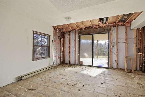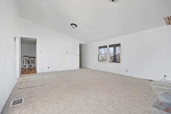 This spacious ranch-style home offers 2 bedrooms with potential for 4, 2 bathrooms, and sits on a stunning 40-acre parcel ideal for hunting, hiking, and outdoor enjoyment. The scenic landscape features wooded areas, a majestic creek, and a small pond, creating a true rural retreat. The home has seen many updates, primarily on the main level, including a brand-new roof, new carpet throughout the upstairs, heated floors in the kitchen and main bathroom, and mostly updated kitchen and main bath. The large living room features vaulted ceilings, and the entry welcomes you with beautiful wood flooring. The kitchen includes a brand-new KitchenAid appliance package with refrigerator, air fryer oven, and dishwasher, with heated floors ready for hookup. The downstairs bathroom is mostly remodeled