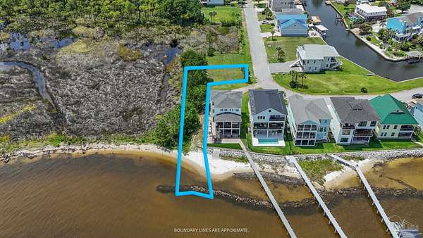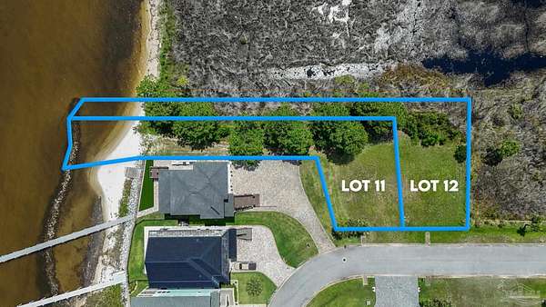 Going East on Hwy 98 turn left on College Park. Take a right on Duke Drive then a left on Stanford Road. Go through the gate and head to the water. Just before Stanford Road turns to the right the vacant lot will be on your right