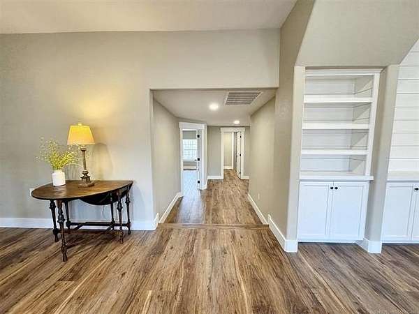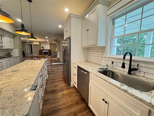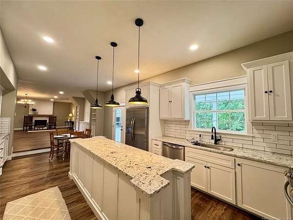 This home has been thoughtfully redesigned with two separate living areas, offering plenty of space for family and friends. Cozy up by the fireplace in one living room or enjoy the custom built-ins in the other. The open-concept kitchen is a chef's delight, perfect for everything from quiet meals to entertaining.