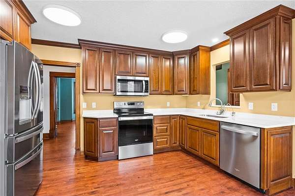 Welcome to a truly stunning turn-of-the-century home set on an expansive 13-acre property. This exquisite 4-bedroom, 4-bathroom property beautifully blends timeless charm with modern conveniences. The home is a showcase of original woodwork and character, featuring a built-in hutch and a spacious kitchen equipped with custom cabinets from Cabinets by Carter in rich Cherry Wood and stunning quartz countertops. Enjoy meals in the formal dining room or unwind in the sun-drenched, four-season porch that offers picturesque lake views of Elk Lake and Lower Elk Lake. The property has been meticulously updated, including refinished floors, updated insulation, new carpet, and many more enhancements. For a comprehensive list of improvements, please contact us for the full supplement.