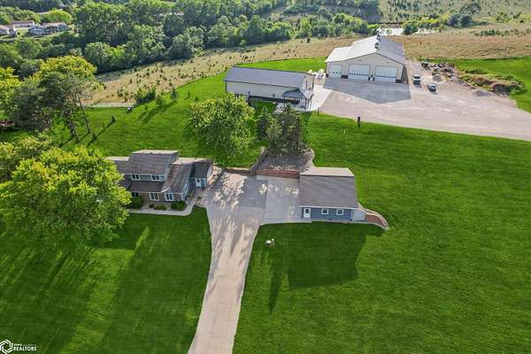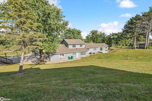 Welcome to your dream acreage! This beautiful and tastefully updated split-level home offers 6 spacious bedrooms, 4 bathrooms, and countless upgrades throughout. Nestled on a picturesque piece of land, this property is a perfect blend of comfort, function, and style. Step inside to discover elegant decorative trim throughout and solid surface flooring in most of the home, with cozy carpeting in the bedrooms, living room, and stairs. The open layout flows effortlessly to a large, inviting deck- ideal for relaxing evenings or entertaining guests while soaking in the peaceful surroundings. Outdoors, enjoy the tranquility of your own private pond and the versatility of two impressive outbuildings- perfect for storing equipment, tools, or recreational toys. Car enthusiasts and hobbyists will love the abundance of garage space, featuring a 2-car attached garage, a 4-car detached garage, and plenty more room in the outbuildings. Whether you're looking for a peaceful retreat or a place to live, work, and play- this incredible acreage has it all.