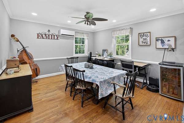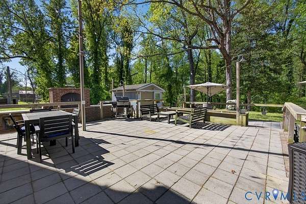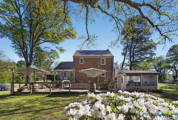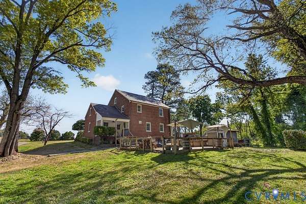 Welcome to 1703 New Market Rd, a rare 7+ acre retreat offering space, privacy, and versatility just minutes from Richmond City. Zoned A1 with county taxes, this 5-bedroom, 3.5-bath Brick & Slate colonial boasts a First Floor Primary Suite & blends timeless character with thoughtful updates. Set on Virginia's Capital Trail & currently functioning as an income-producing AirBnB, this property features open pastures & a wooded backdrop, ideal for hobbyists, animal lovers or those seeking a private homestead. A long driveway leads to multiple parking areas, a large livestock enclosure & a well-equipped workshop with water, electric & covered carport. Additional outdoor features include a goat nursery, chicken coop, landscaped grounds & a tranquil waterfall pond. The backyard is designed for entertaining with an oversized patio, fire pit area & a fully equipped outdoor kitchen with custom brick smoker, grill, burner & sink, plus a dedicated hot tub/sauna house. Inside, the home offers original hardwood floors, detailed moldings, and flexible living spaces, featuring newer Andersen windows & air conditioning systems for comfort. The spacious kitchen includes a center island & stainless appliances. Head upstairs to a second primary bedroom with ensuite bath; plus three other bedrooms offering generous space & access to a walk-up attic with expansion potential. The basement adds more versatility with a workshop, mudroom, bonus spaces & a large bonus area complete with fireplace, sink & bath. Zoned for horses & livestock & located just minutes from Route 895, schools & Church Hill, this property offers the perfect balance of rural charm and accessibility.