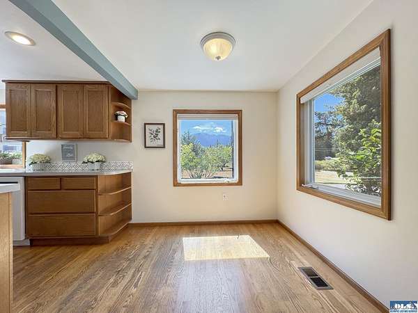 This iconic "Seven Peaks" home is where timeless character meets modern comfort. Perched above the city on 3.72 acres of natural beauty, this stunning property offers a rare blend of history, privacy, and panoramic views of the Olympic Mountains. Built in 1935 and lovingly updated, home is more than a residence--it's a lifestyle. Step inside and discover 1,774 sq. ft. of warm, inviting living space graced with arched doorways, abundant built-in storage, and oversized windows framing dramatic mountain and valley vistas. The spacious living room, anchored by a wood-burning fireplace insert, creates the perfect setting for cozy evenings. A forced-air heat pump ensures year-round comfort, while Hunter Douglas blinds andd a refined touch throughout. Primary bedroom is located on the main floor with large windows and walk-in closet. Convenient living with a bonus room just off of the kitchen. Upstairs, features three bedrooms and a home office space with built in drawers and cabinets. Step out onto the second-story composite deck and savor breathtaking sunsets over the Ennis Creek valley. The basement is ready for your hobby shop and plenty of room for storage. Extensive updates in 2005--including electrical, plumbing, and windows--blend seamlessly with the home's vintage character. A brand-new roof, gutters, and fascia installed in 2024 offer peace of mind for years to come. Outdoors, the possibilities are endless and peaceful. Enjoy a large open yard for play, a timbered ridgeline for exploring, trails and a natural irrigation well for gardening enthusiasts. The setting is private yet just minutes from town--perfect for those seeking tranquility without sacrificing convenience. Well for irrigation water with pump inside the home. This is n to a house but a home. It's a piece of Port Angeles history, a retreat from the ordinary, and an opportunity to live surrounded by beauty every single day.