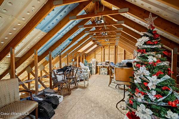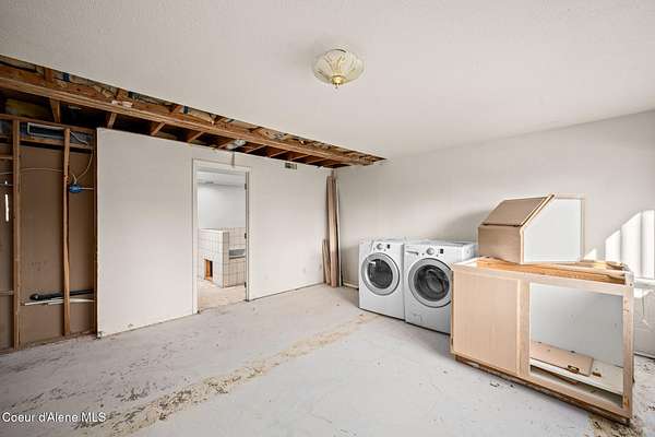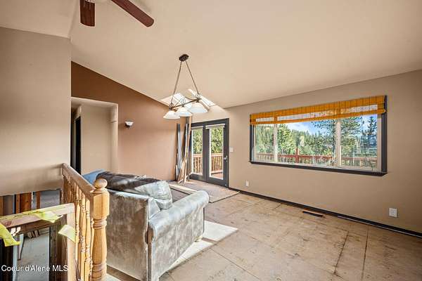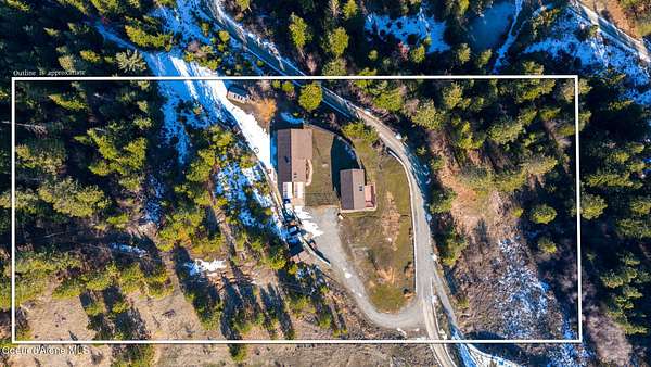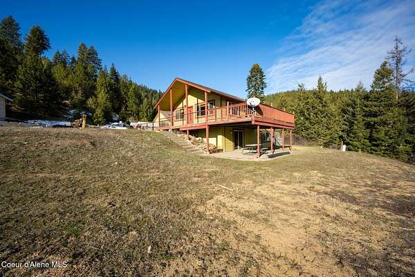 Set on nearly five sloped, forested acres with mountain views, this unique Coeur d'Alene property offers privacy, flexibility, and upside rarely found at this price point. The 1,824 sq ft main home has undergone professional water remediation by Alklean, with the source corrected. The home has been intentionally opened up, with sheetrock removed approximately two feet and flooring removed, providing a clean and transparent starting point for renovation and customization. A separate 990 sq ft guest house with an office offers immediate usability, along with an unfinished loft above the garage that presents expansion potential for an additional room, studio, or flex space. Ideal for extended living, rental income, or a private work-from-home setup. The property is served by a private well with pump house and existing 3,000-gallon water storage. Tucked into a quiet, wooded setting, this property is well suited for investors, builders, or buyers seeking value-driven opportunity.