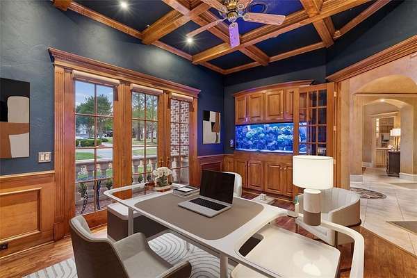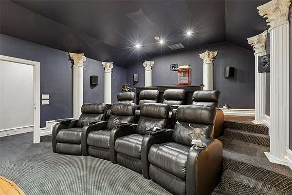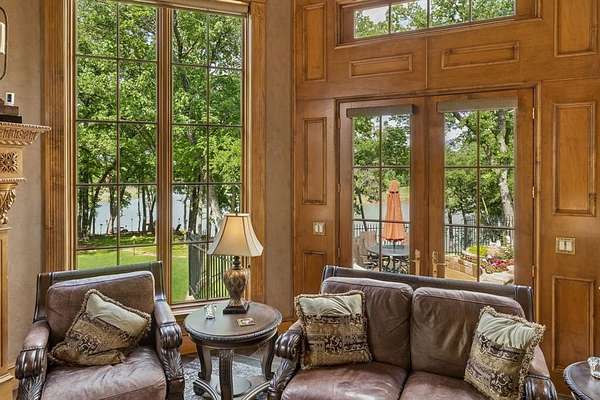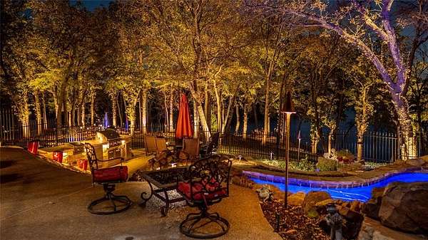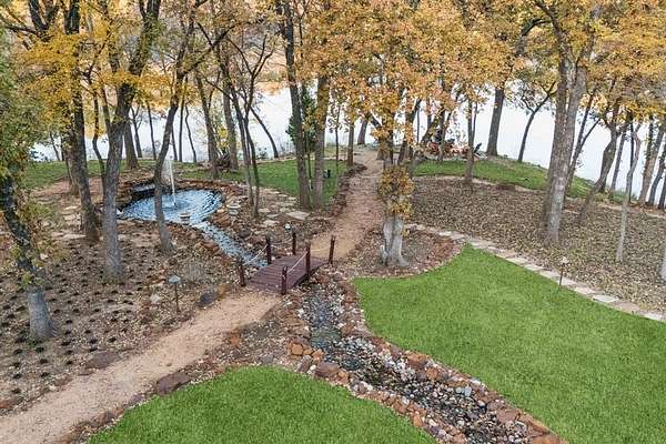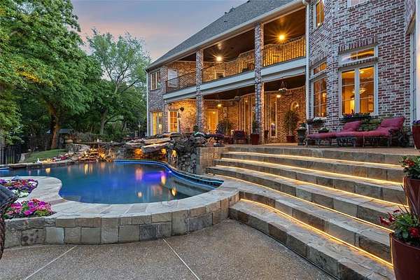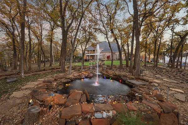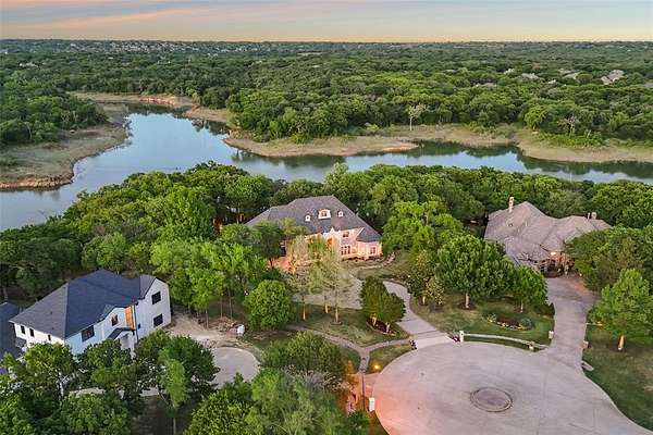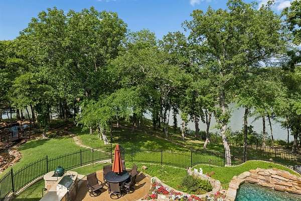 An extraordinary expression of luxury & exclusivity, this one-of-a-kind estate is tucked away on a private 1.6 acre wooded cul-de-sac lot in the prestigious gated community of Point Noble, along the coveted north shores of Lake Grapevine. Offering an unparalleled 523ft of pristine lake frontage w-unobstructed views of protected core land, this remarkable residence delivers ultimate privacy, breathtaking natural beauty & direct access to the water via a private road & boat launch. Spanning three levels, this impressive estate features 6 bedrooms, 3 expansive living areas, 2 elegant wet bars, a wine cellar, 3 fireplaces + a 3.5-car garage, all seamlessly connected by a private elevator which leads up to a guest apartment, perfect for multigenerational living. Every detail has been curated for both grand-scale entertaining & refined everyday living, from the resort-style outdoor oasis featuring a stacked stone pool, infinity-edge spa & multiple cascading waterfalls, to the fully equipped outdoor kitchen w-premium SS grill, flat top, Green Egg, sink + fridge. The grounds rival a private park, complete w-a tranquil koi pond, a winding lazy river, granite walking paths, landscape lights, a fire pit + a picnic area overlooking a peaceful cove, frequented by deer & blue heron. Inside, sophistication meets innovation w-a stunning 200-gallon in-wall saltwater aquarium, a tiered theater room w-140-inch screen & a smart home integration, including whole-house audio, extensive Z-Wave lighting, security cameras + advanced water monitoring systems. Built to the highest standards, the home boasts a reinforced engineered foundation wi-72 belled piers, 2x6 foam-insulated construction, Pella wood windows & doors + a 2024 roof & gutters. Comfort and efficiency are elevated w-4 new HVAC systems, dual tankless water heaters w- recirculation & multi-zone smart irrigation. Private patios extend from nearly every major room, creating a seamless indoor-outdoor lifestyle immersed in nature.