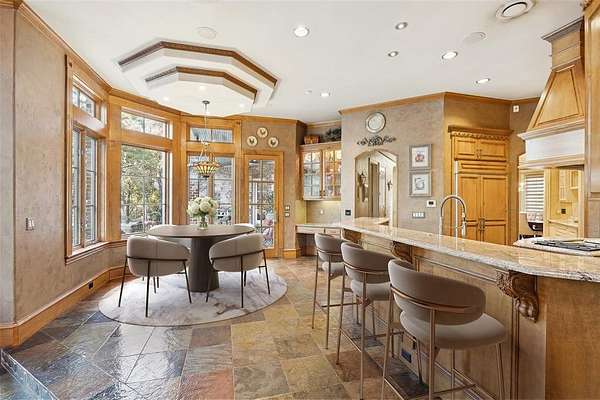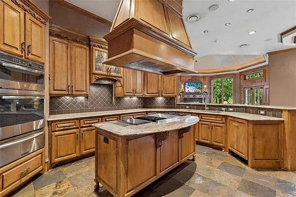 - Built-In Features, Built-In Wine Cooler, Cable TV Available, Cathedral Ceiling(s), Chandelier, Decorative Lighting, Double Vanity, Eat-In Kitchen, Elevator, Flat Screen Wiring, Granite Counters, High Speed Internet Available, In-Law Suite Floorplan, Kitchen Island, Loft, Multiple Staircases, Natural Woodwork, Open Floorplan, Paneling, Pantry, Vaulted Ceiling(s), Wainscoting, Walk-In Closet(s), Wet Bar, Wired For Data