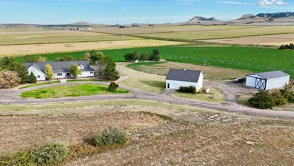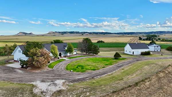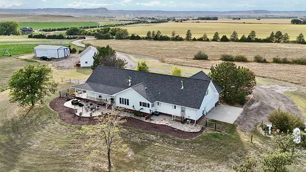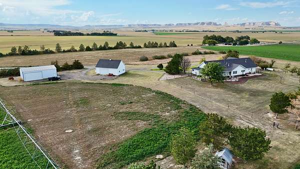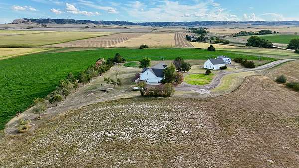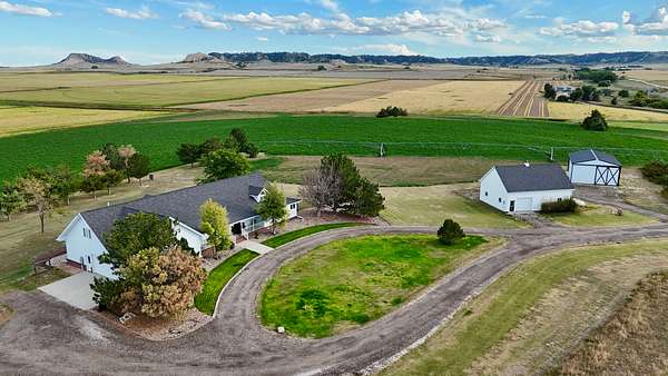 This property features many mature trees bordering the nearby county road giving a very private setting. From your hilltop vantage point, you'll enjoy sweeping panoramic views of the surrounding countryside--sunrises that paint the sky, and fantastic sunsets that dip behind the bluffs. On clear days, the scenery stretches for miles, offering a peaceful and ever-changing backdrop right from your porch. The homestead sits in the middle of 66 acres of the highly sought after Scottsbluff County irrigated farm ground that can be purchased along with the home for an additional price.