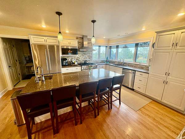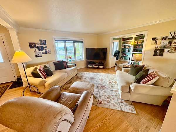 Perched atop a scenic hill and surrounded by the natural beauty of mature trees, this spacious 5-bedroom 1 nonconforming, 3.5-bath home offers breathtaking panoramic views and the privacy of +/- 12.36 sprawling acres. A true sanctuary, this property blends rural tranquility with modern comfort. In addition to the homestead the surrounding 66 acres of productive irrigated farm ground can be purchased for details and price give us a call.