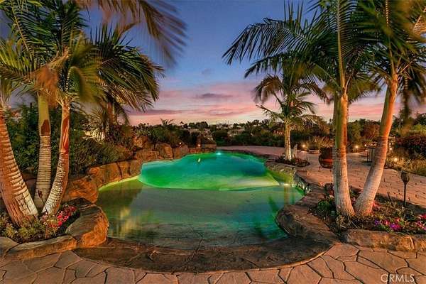 Step outside to your own backyard oasis, complete with a saltwater pool featuring rock accents and a cascading waterfall...perfect for relaxing or entertaining.