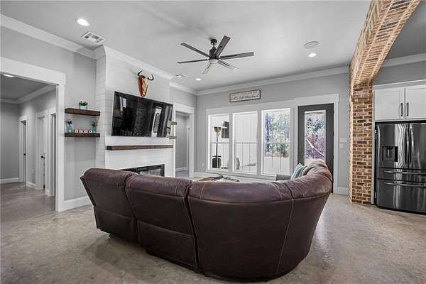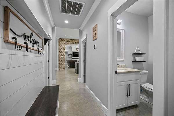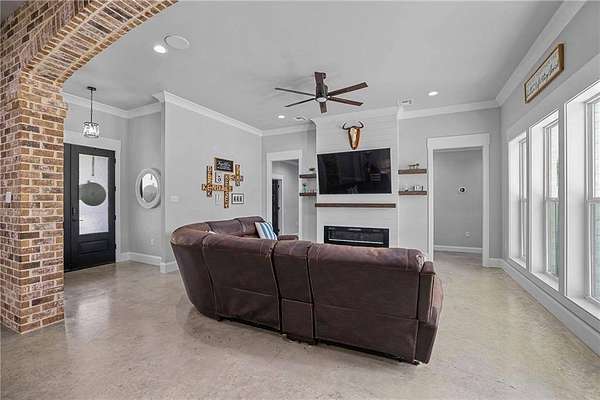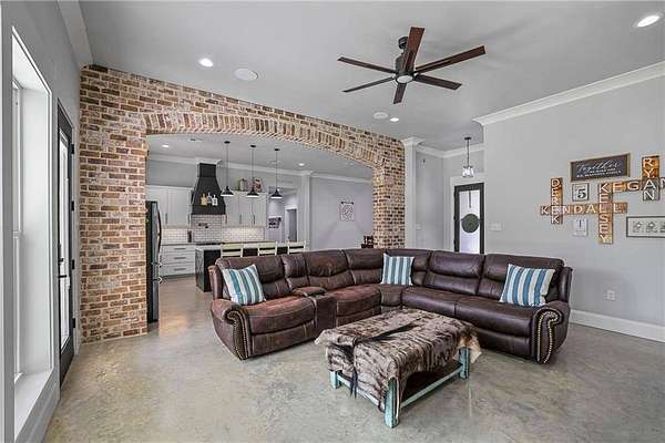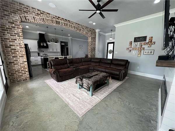 Stunning Custom Home at 17045 Burks Ave, Built in 2022!** 3288 sq ft of pure elegance, nestled on nearly 2 acres of tranquility. 4 spacious bedrooms, 2.5 luxurious bathrooms, plus a bonus room for all your needs. Located in the desirable Central School District. Flood Zone X for your peace of mind. Features include: - Gorgeous concrete floors & granite countertops throughout. - Open concept floor plan with a charming brick archway between the kitchen & living room. - Master suite with a soaking tub, walk-thru shower & dual vanities. - Walk-in closets in every bedroom. - Oversized laundry room with built-in cabinets for folding & hanging clothes. - Expansive back porch, perfect for entertaining or relaxing in the afternoon breeze. - 2-car garage with an attached workshop for all your projects.