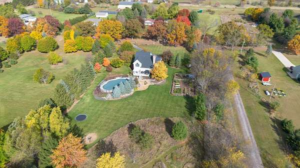 *Offer Received-Final & Best offers due by 4pm on Sunday Oct. 26th* Absolutely breathtaking are the first words that come to mind when describing this stunning contemporary 2 story home with 2,394' above grade, 4 bedrooms, 2. 5 bathrooms on 2.15 acres with panoramic views in all directions. You'll fall in love with this gorgeous home before you even walk inside of it! The curb appeal will impress the most prudent of buyers with its beautiful design, professional landscaping and wrap around porch. Upon entry, you'll be greeted with hardwood flooring, a recreational den, perfect as it is or could be converted to an office/formal living room. The detailed custom built-ins stand out, along with the family room's vaulted ceiling and wood-burning fireplace. The gourmet kitchen is perfect for the chef in the family with its high-end SSA's, hickory cabinetry, center island, granite countertops and ceramic backsplash. The spacious formal dining room provides an ideal setting for gatherings with friends, and the convenience of main floor laundry facilities will be highly valued. The spacious primary suite features vaulted ceilings and custom-designed walk-in closets, while the primary bathroom includes a jetted bathtub and a separate shower. Other features include sold wood panel doors throughout, a synthetic rear deck-perfect for outdoor enjoyment and don't forget about the salt water pool w/new liner! There's a whole house 24kw Generac generator, tankless hot water tank, a full basement awaiting your finishing touches, a 2 car attached garage, large vegetable garden, new roof and newer garage doors! There's High Speed Internet available and all appliances are included!