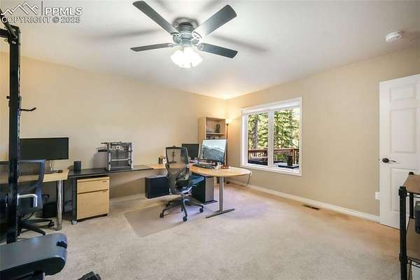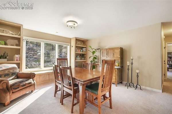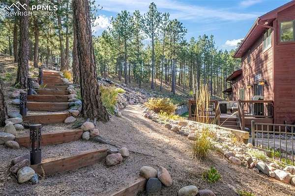 Welcome to this beautiful two-story home nestled in the desirable Bent Tree II community. Situated on 2.59 acres and surrounded by mature trees with a view of Mount Herman, this property offers privacy, natural beauty, and an exceptional setting for outdoor living. Inside, the home greets you with vaulted ceilings and a spacious living room featuring a gas fireplace and large windows that fill the space with natural light. This room also provides access to a private front deck, perfect for relaxing in the peaceful surroundings. The dining room offers a charming window seat and built-in shelving, flowing into the kitchen with granite countertops, stainless steel appliances, and tile flooring. From the kitchen, access the back deck where you'll find a serene water feature, a beautiful treed backdrop, and a gas line for outdoor cooking and entertaining. The main level includes a laundry room with cabinets, sink, window, and access to the oversized finished garage. A main level bedroom with dual closets and a ceiling fan, along with a full bathroom, completes this floor. Upstairs, the private primary suite features vaulted ceilings, a window seat with mountain views, and dual walk-in closets. The adjoining bath offers double vanities, a large soaking tub, walk-in shower, and a view of the tranquil water feature.The walkout basement includes a large family room with laminate wood flooring, a gas fireplace, and access to a fenced yard ideal for outdoor gatherings or pets. Two well-sized bedrooms, one with dual closets, and an additional full bathroom provide comfort and flexibility. A spacious utility room offers plenty of storage and space for a small workshop. Additional features include a new roof, extra-tall third garage bay door, whole-home humidifier, UV air purifier, new wood deck, and beautifully maintained landscaping. Located at the end of a cul-de-sac, this property combines tranquility, space, and outdoor enjoyment in the heart of Bent Tree II.