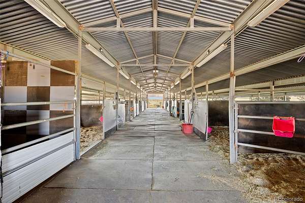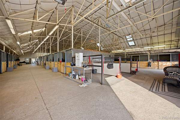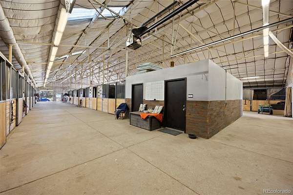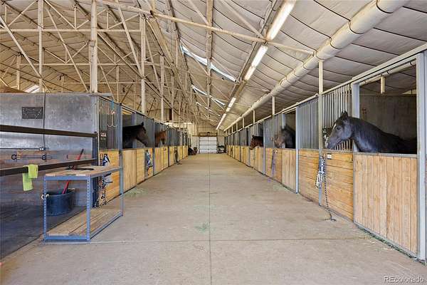 Location!! Offering Sky View Farms,legal operating Equestrian facility in Douglas County, special use permit for 50 plus horses, commercial well and water rights.This peaceful oasis is convenient to Castle Pines and also allows easy access to Denver Tech Center. It sits east of of 1-25 and directly south of the newly developed Canyons.Close to Castle Rock downtown,,every amenity is at your fingertips.The properties private gated entry accesses a thriving 50 stall occupied equestrian training business of competitive horses along side a 5013c with room for retirement horses or brood mares and ample turnout ,good footing in both, indoor and outdoor arenas ,a large round pen and plenty of trails. Dirt roads through the community allow for trail riding as well. The main show barn boasts 29 large stalls, a Heated Office and Lounge (Class Room) 1 large tack room plus 2 small converted additional tack rooms.It also has Heated water in the wash bay and 3 grooming stalls.The lower barn has 17 Retirement or breeding oversized stalls a heated lounge , tack and feed room.A 5013c leases a 4 stall small barn on the property and will happily continue to lease. There are 38 individual paddocks and 1 large pasture all fenced with white lightening fencing to keep your horses safe..The pastures are frequented by elk .Train year round in this large heavily Insulated indoor arena with led lights with more than enough room to jump a course. The indoor has a lovely separate office with a patio.The large oudoor arena has views and great natural footing that drains quickly. The round pen is a nice size for longe lining or lunging horses. A euroxciser could also easily be placed there.There is a 3bd 2 ba Modular home for support staff creates a place for full time help to reside on site.It could be replaced with your dream home. The full walk out basement gives options for staff or boarders. The possibilities of your own venue, 5013c or training business allow you to create your lifestyle!
