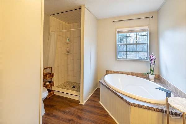 - Breakfast Area, Double Vanity, Garden Tub/Roman Tub, Kitchen Island, Main Level Primary, Pantry, Separate Shower, Split Bedrooms