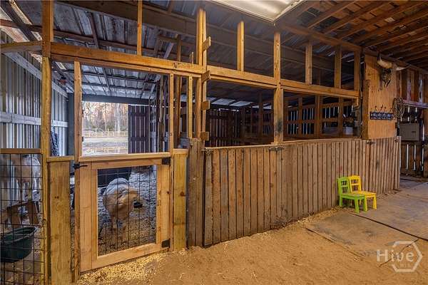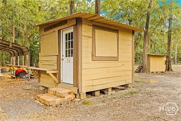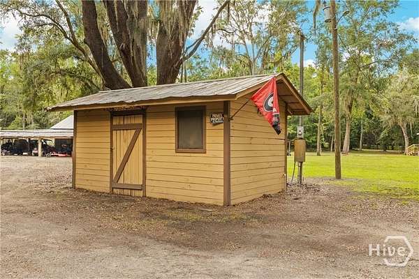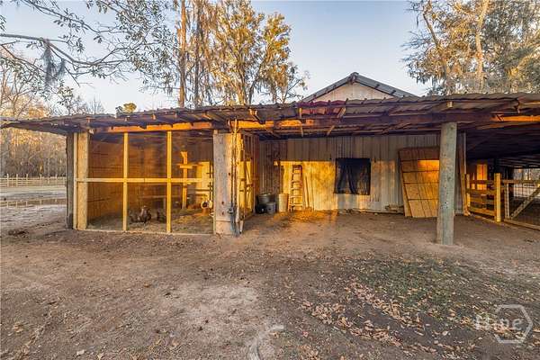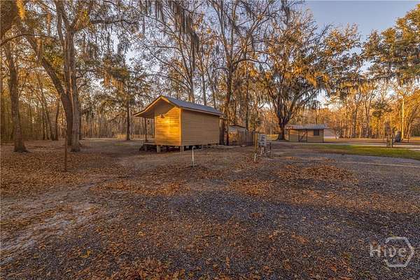 Potential RV Park, Mini-Farm, horses, goats, chickens.. Multi-use, income-capable estate centered around a private pond setting, featuring 5-12 full-service RV hookups with electric, water, and sewer, plus a renovated 4-bedroom residence suitable for owner occupancy, on-site management, or short-term rental. The infrastructure supports hospitality, agri-tourism, and event-driven business models, Large barn with 3-stalls, hay loft and covered parking, new fencing for horses, goats or sheep with a chicken coop. Additional buildings include a detached kitchen with oversized commercial freezer, a two-bedroom bunkhouse with full bath for staff or guest accommodations, storage buildings, and two large stone fire pit gathering areas designed for group experiences. The layout is optimized for RV park operations, retreat hosting, farm-based programming, and event rentals. High-demand travel corridor, located between Savannah and Jacksonville and less than 10 minutes off Interstate I-95, this property is strategically positioned as an ideal stopover destination for travelers while possibly supporting multiple commercial and hospitality uses. Across the street from the infamous Hampton Island. Seller is a licensed Realtor. Includes 1615 Retreat Road, Two parcel numbers.