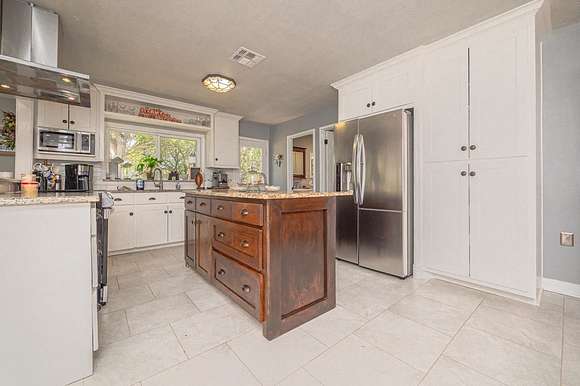 Come see this lovely country home on 2.5 fenced acres, in a quiet, desirable area of Aransas Pass. Proceed down the winding drive that is flanked by native oaks & pine trees. Be sure to watch for all of the wildlife that are at home here--deer, javalina, Sandhill Cranes, all kinds of native birds, lots of squirrels as well the occasional possum & raccoons are just a few who have been spotted here. You are here! You have arrived at the house! The covered front porch welcomes you into the updated 3-bedroom 2-bath home featuring custom solid wood cabinets, a modern kitchen with granite counters, an oversized island, a bonus room, and upgraded appliances. The inviting home features tile floors downstairs & luxury vinyl plank upstairs, upgraded baths and 21 windows that bathe the interior in natural light. A detached carport, with a storage room, is very handy. The RCA barn, on concrete footings, features stalls for 6 horses, hay lofts, a large tack room & is supplied with electricity & water