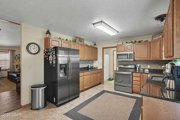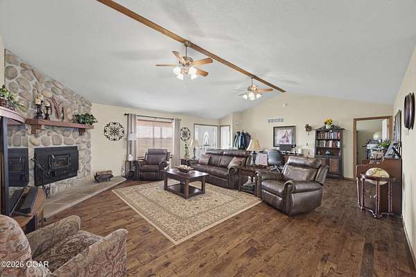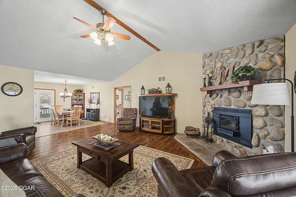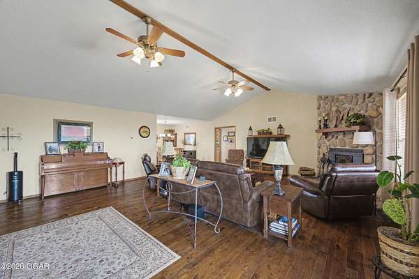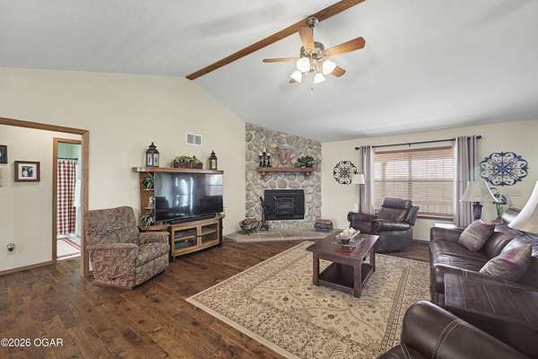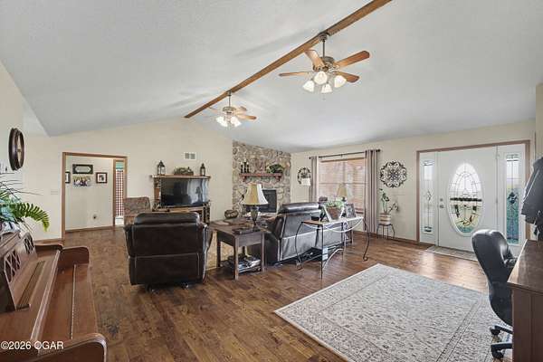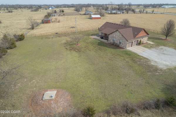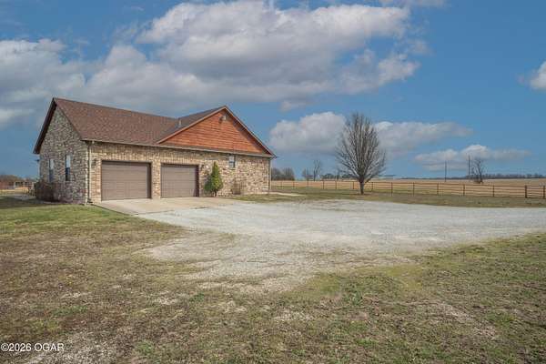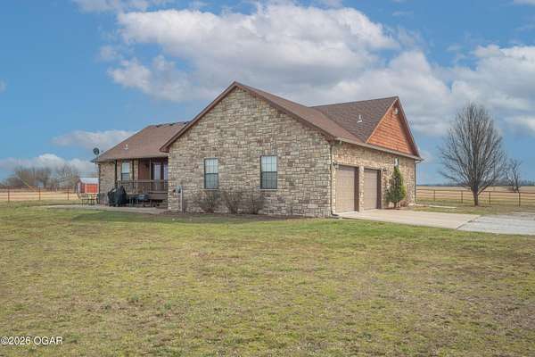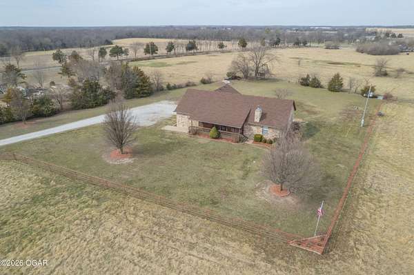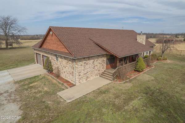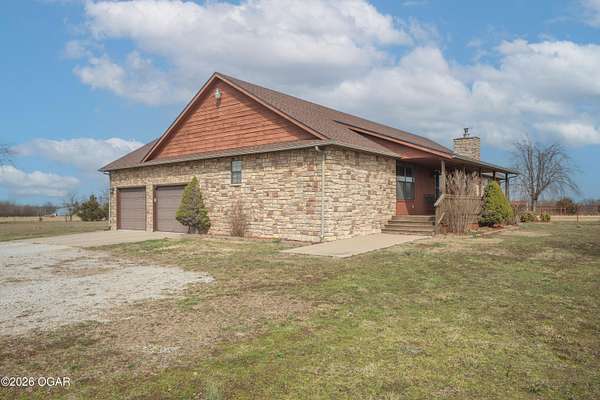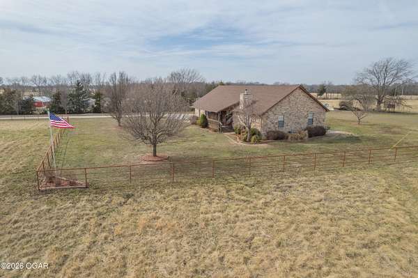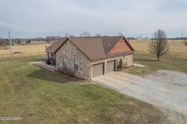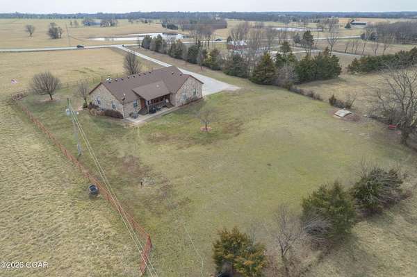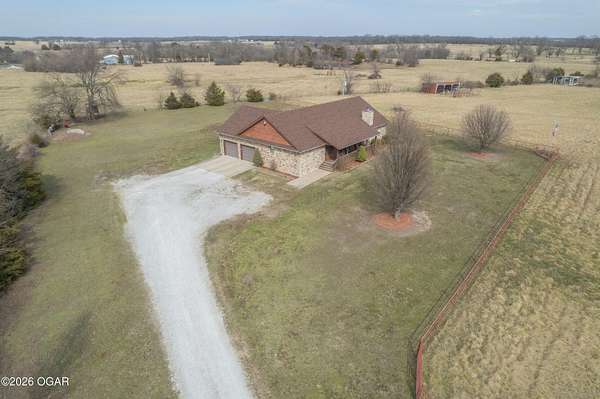 Beautifully situated on 6.8 scenic acres, this property offers the perfect balance of peaceful country living with the convenience of being just a short drive to town. Located outside city limits, you'll enjoy privacy, space, and wide-open views while staying close to everyday amenities when needed. This 3-bedroom, 2-bath home with 1,980 square feet features a long, welcoming driveway and a 2-car attached garage, creating an impressive approach and plenty of parking. Inside, you'll find a cozy wood-burning fireplace and new granite countertops that add warmth and style to the living space. A new roof provides added peace of mind, while Newmac Electric service is a major bonus for efficiency and reliability. The property is fenced and includes a storm shelter for added safety. Whether you're looking for room to roam, a private retreat, or a home with modern updates and land to match, this one truly checks all the boxes! Schedule your showing today!
