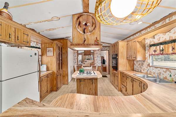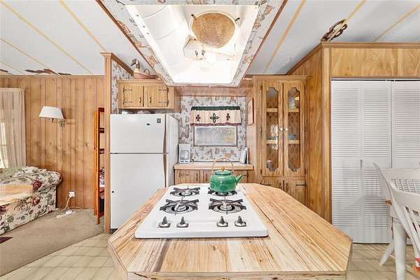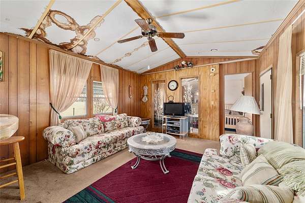 Under contract-accepting backup offers. Opportunities like this don't come around often--don't miss your chance to make this property your own! Discover incredible potential with this 2-bedroom, 2-bathroom mobile home situated on 1.56 acres of peaceful, private land. If you've been searching for space, flexibility, and an opportunity to create your own retreat, this property delivers all of that and more. Step inside to an OPEN FLOOR PLAN that makes everyday living feel connected and comfortable. Both bedrooms feature their own PRIVATE BATHROOMS, offering COVIENIENCE and PRIVACY for guests, family, or roommates. The SPACIOUS kitchen includes an ISLAND WITH COOKTOP, a DINETTE area, and an in-kitchen laundry setup--keeping daily tasks simple and efficient. The primary suite is a standout, featuring DUAL VANITY areas, a large SIT-IN SOAKING TUB, and a private commode area with a stand-up shower. This home is cash only due to damaged roof/ceiling, and it has been priced accordingly to reflect the TLC needed. For the right buyer, this is an amazing chance to add value, customize, and enjoy over 1.5 acres at an unbeatable price.