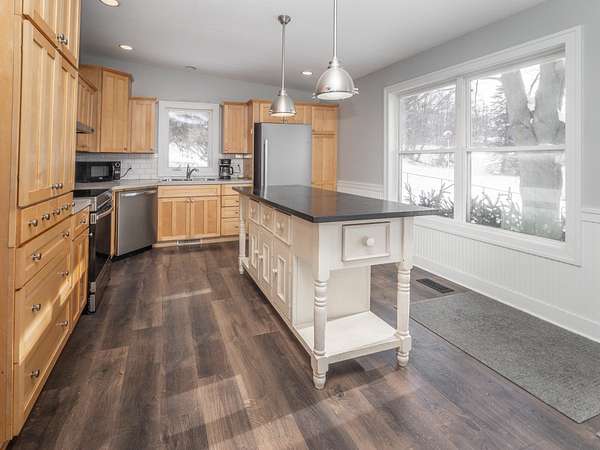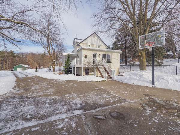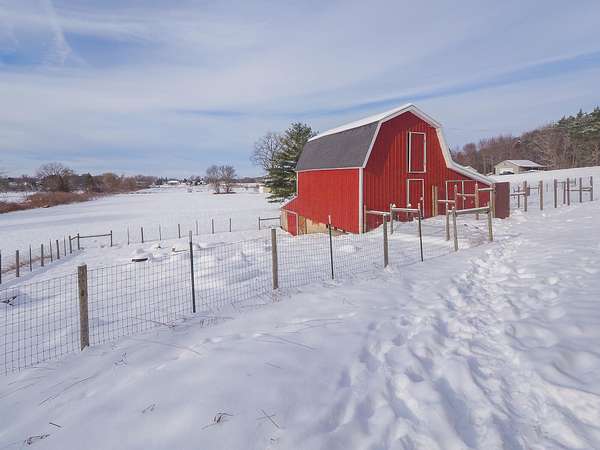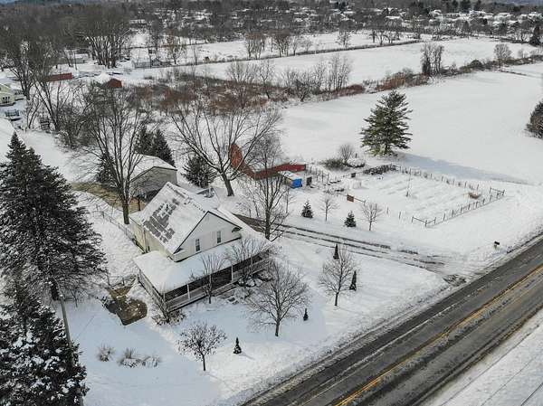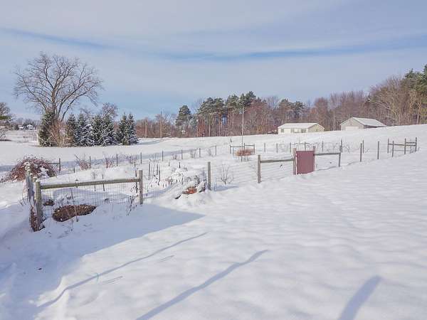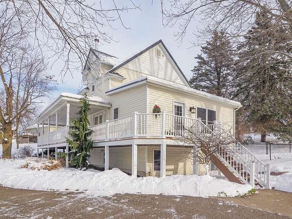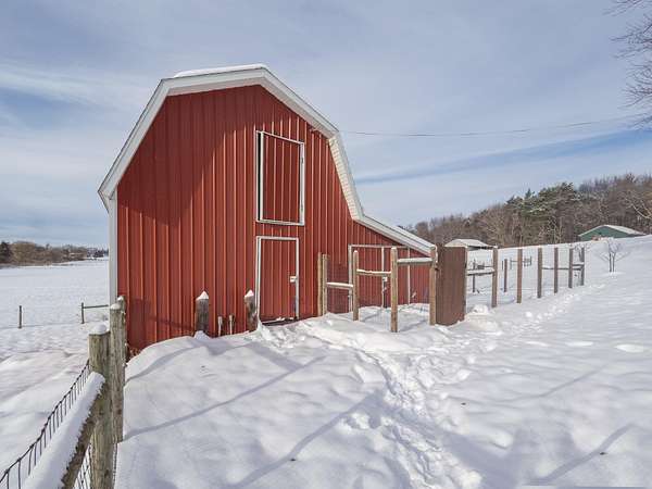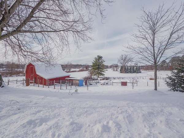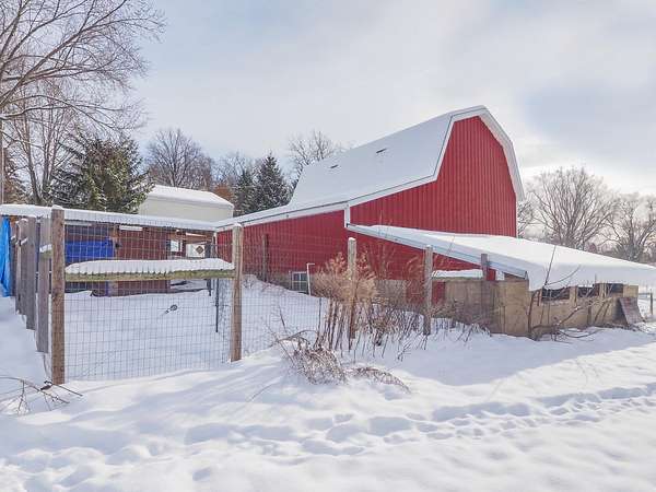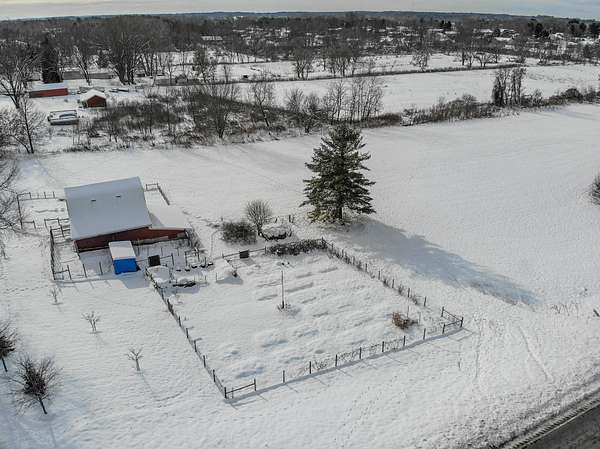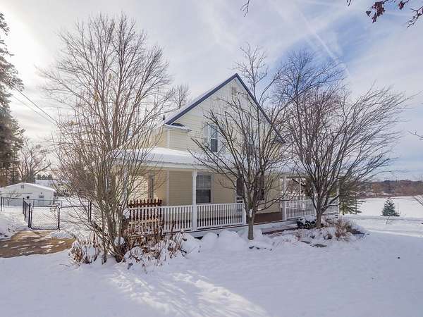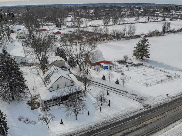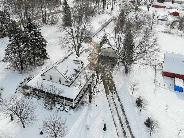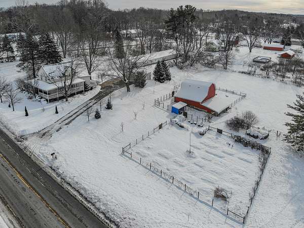 Wayland Schools. Six acre mini farm. This updated farmhouse offers more than 2600 square feet of living space. The home was raised in 2004 and set on a new full basement that was finished for added comfort and flexibility. A wraparound covered porch gives the home standout curb appeal, plenty of charm, and a comfortable place to unwind with friends and family. Inside, the kitchen features a center island, pantry, and generous cupboard and counter space. The living room and dining area flow together and include a wood burning stove, large windows that bring in natural light, a built in desk, and a full bath. Just off the living room is a den or office that could serve as a main floor bedroom. Upstairs you will find two bedrooms, one having a bonus room off it, and another full bath. The lower level includes a third bedroom with a private bath, a family room, and a laundry area. The backyard is fenced. Recent updates include new flooring, central air installed in 2023 new appliances in the kitchen, a new garage door, and a replacement water heater in 2019. The metal roof over the kitchen has been replaced. The roof on the red barn was replaced, and considerable updates and repairs were made by sellers to make it a safe and suitable barn for your livestock. Outside, the property delivers everything needed for a functional homestead. There is a detached two car garage, a 3600 square foot pole barn with natural gas and 240/60 amp service, and a three level red animal barn with stalls, a run in area and hay storage. You will also find a chicken coop, fenced pasture, fenced garden space with asparagus, rhubarb, berries and grapes, fruit trees, and a hay field. This property has something for everyone! At the end of the day enjoy the beautiful sunset view as you gather around a cozy bonfire in your fire pit. The property sits between Grand Rapids and Kalamazoo, close to lakes, ski resorts, and the casino. RESERVED ITEMS: Vise on workbench in pole barn, security system, and cameras.