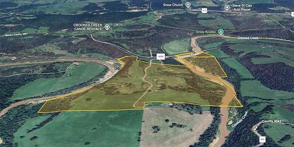 100+ Acre Recreational Farm with Home on Crooked Creek - Outdoor Paradise! Welcome to your private retreat nestled on 100+ acres of stunning, multi-use land bordered on two sides by the pristine Crooked Creek. Whether you're looking for a recreational haven, a working farm, or a peaceful place to call home, this property has it all. Enjoy floating, fishing, and hunting right outside your door in a true sportsman's paradise. The land features two ponds, gently rolling pasture, and wooded areas teeming with wildlife. A barn, cow waterer, hayfield and two additional wells make this property ideal for cattle, horses, or hobby farming or could open up opportunities to build a new home or hook up an RV/mobile home. The cozy 2BR/2BA home offers comfort and charm with a large deck overlooking the creek-the perfect place to sip your morning coffee while taking in the sounds of nature. The unfinished basement provides room to expand or customize to your needs. Call for showing today!