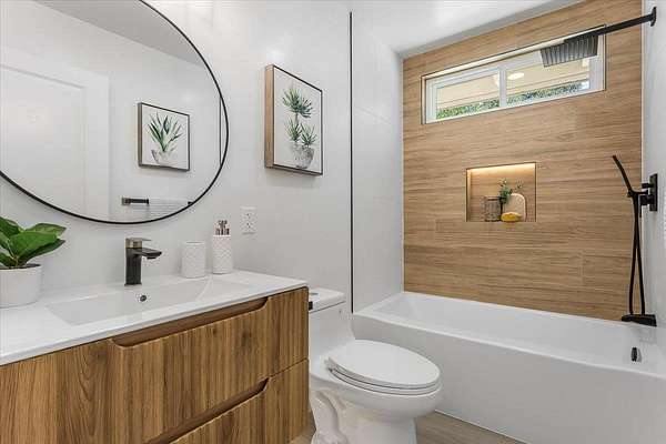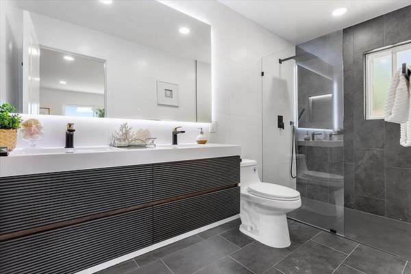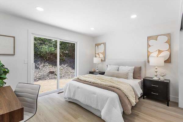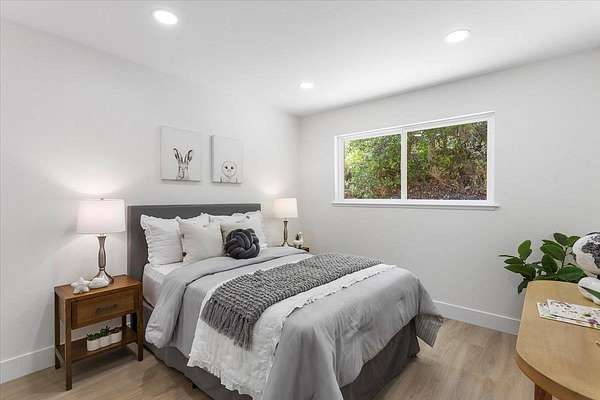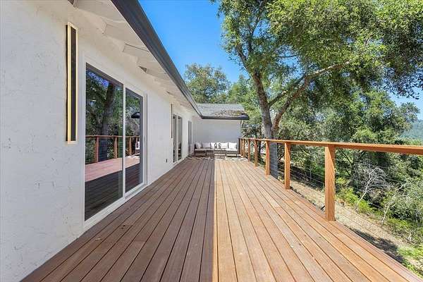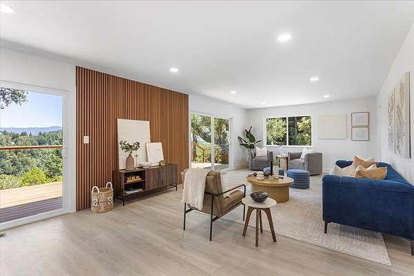 BACK on market: septic / leach field fixed & passed county inspection + property now fully connected to public water * SCENIC ESCAPE MEETS MODERN LUXURY w/TOP RATED SCHOOLS, VIEWS & the Milky Way Functional beauty on FLAT, SUN-drenched land Great phone signal Thoughtfully re-imagined - newly remodeled w/expansive views, elegant finishes w/sleek lines Expanded kitchen w/European style cabinetry, 5 burner cooktop, Ruvati workstation sink w/cutting board, rinse grid & basket strainer; quartz countertops & backsplash, S/S appliances, oven / microwave combo Open concept living / dining room w/ maple acoustic soundproof wood slat wall paneling Light filled primary suite w/ walk-in closet, chic accent wall & views Primary bath w/ double floating vanity, quartz basins, & European shower Formal entry w/ shiplap accent wall Separate laundry room w/ barn door Batu wood deck w/ cable railing New dual pane windows Recessed lighting Waterproof luxury vinyl plank & tile flooring Expanded & freshly paved driveway Minutes from vibrant Los Gatos downtown Short drive to local Summit Store & Deli, beach & hwys 17 & 85 THIS is SERENE LIVING REDEFINED ** WELCOME HOME - THIS ONE IS FOR YOU!!