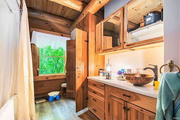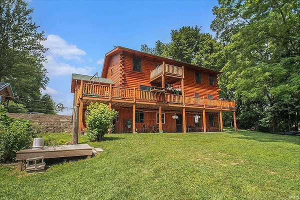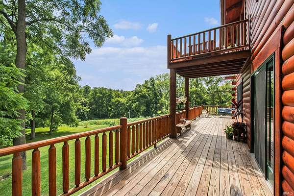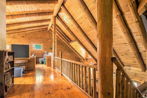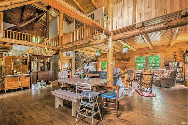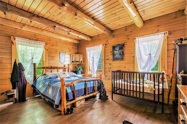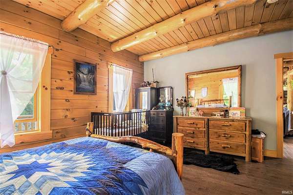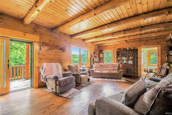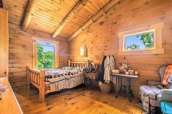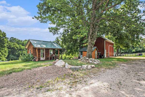 Welcome to this non-electric homestead on 5 picturesque acres in Middlebury schools! The two-story log home with a walkout basement was built with quality craftsmanship in 2021. It does not have wiring for electricity or any air conditioning ductwork. The home features rustic hickory kitchen cabinets, soaring ceilings, hardwood flooring and space to add more bedrooms. Enjoy relaxing on the full width deck or the upper story balcony, while taking in the peaceful views of the spacious backyard. The historic bank barn has a newer metal roof and metal siding, along with a large haymow and space for livestock. The property features a large garden, a productive orchard with numerous fruit trees and berry plants, a garden shed, 2 chicken coops, and several pastures. There are also several acres of woods with some timber value, a food plot, and a hunting blind.