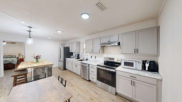 Est $1,253/moCountry living in the Wicksburg Community...this sweet and remodeled home features 2 bedrooms, 2 baths and is situated on 2.62 acres. Low maintenance with NEW metal roof as well as NEW stainless appliances, cabinetry, flooring, toilets, lighting, interior paint, front deck and gutters. A/C was replaced in 2018. Property also features a detached 25x40 enclosed workshop with electricity, water, sink, LED lighting, a loft for storage and an exterior lean-to for tractor or boat storage. There is also a 30 amp RV hook up service for a camper.