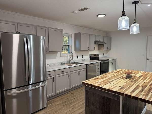 Take a look at this great property! This Ranch Rambler House and additional Tiny House sits on 2.83 acres and has been completely renovated. The main house has a new metal roof, new stainless- steel appliances, new cabinets, new flooring, new toilet's, new lighting, and painting throughout, new front porch deck, new motion activated flood lights outside, new gutters and much more. Heat pump 2018. Bring your mother-in-law, there is a separate Tiny house for her so she can have her privacy, with it's on power meter, new tankless water heater, new plumbing, new lighting and built in air conditioning. 30-amp RV hook up service for a camper as well as water and sewer. 2 septic tanks, one for the main house and one for the Tiny house and a camper. Both pumped in 2025. New storage building/well house. 25' x 40' detached garage/workshop with 6" concrete slab. The detached garage/workshop has running water and sink. Upgraded with new led lighting, added plugs every 12', 220v power for air compressor room, loft for extra storage, lean-to for vehicle, boat, trailer, etc.