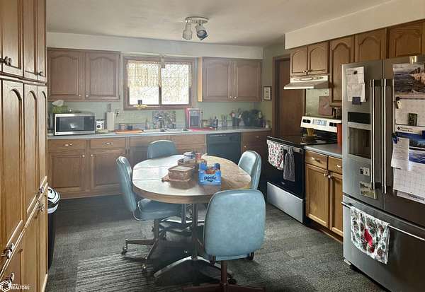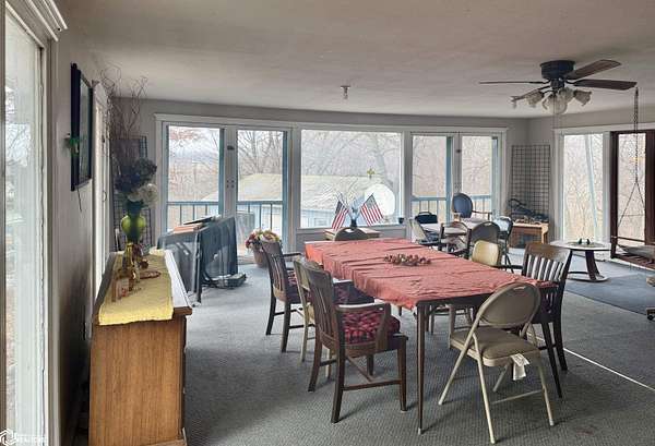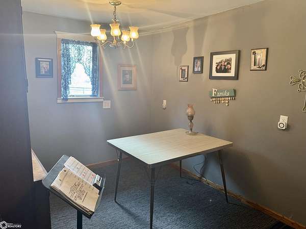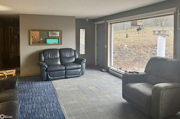 This 3, possibly 4-bedroom, 2-bathroom home on 2.7 acres is located on Highway 34, just 5 miles west of Chariton. The home features both an eat-in kitchen as well as dining room, and a spacious living room filled with natural light from numerous picture windows. A large bonus room over the tuck-under two-car garage provides flexible space for a family room or sunroom with peaceful, scenic views. The home offers both electric baseboard heat as well as a wood stove for heat. This property has a nice garden area along with additional 2-car garage for extra storage. Close to town, on pavement, with many possibilities!