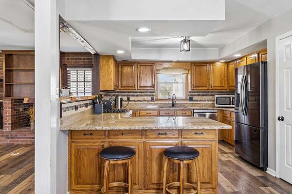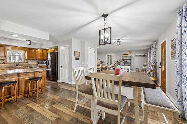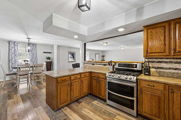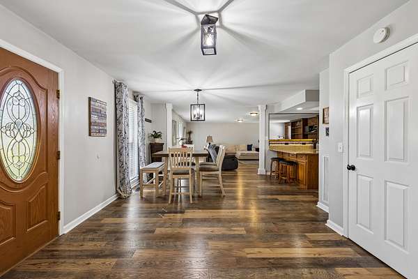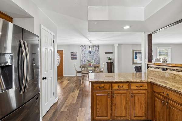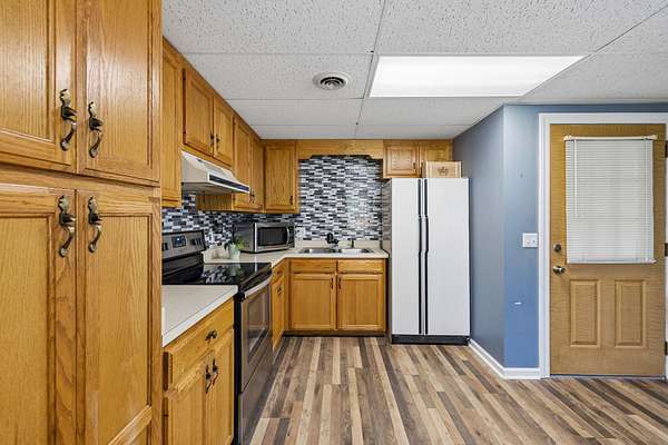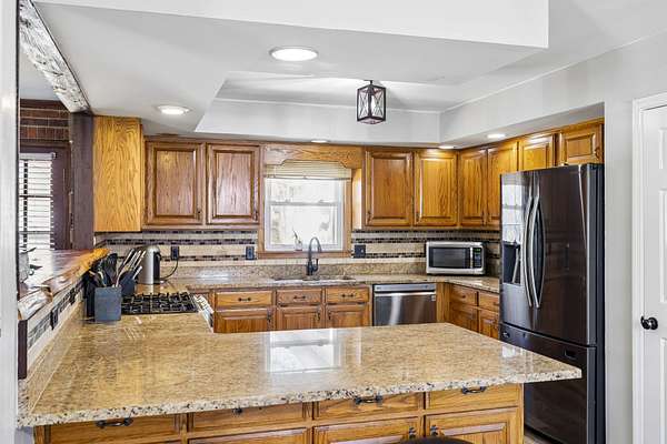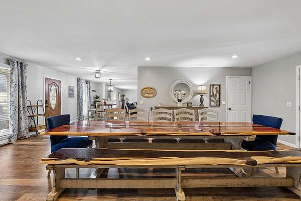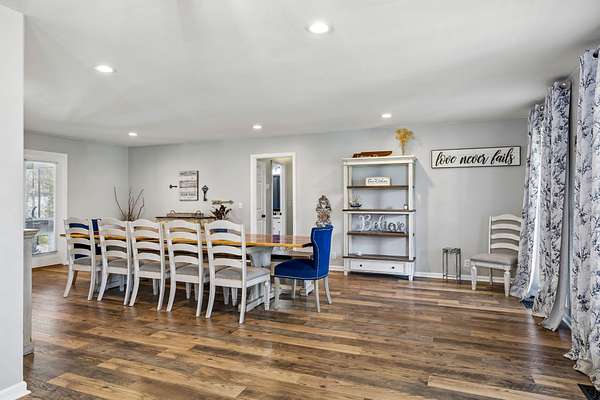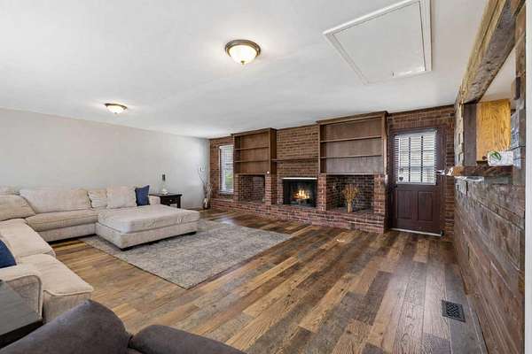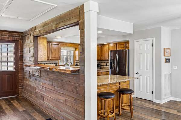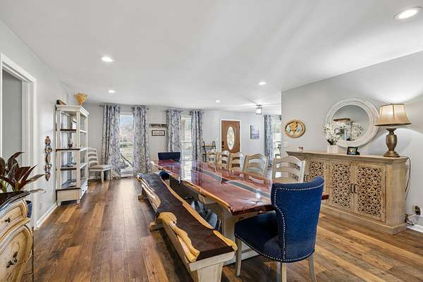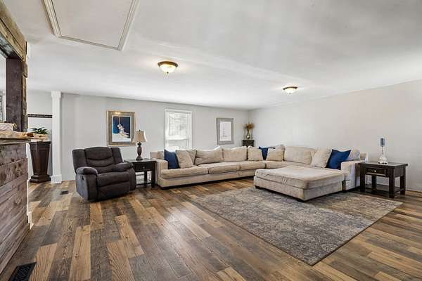 Set on a private 1.5 acre lot with no HOA, this stunning ranch home blends space, style & flexibility in one exceptional property. Boasting 6 bedrooms and nearly 4,000 SQ FT, the layout is designed for both everyday living & multi-generational needs. The finished basement has a full in-law suite complete with its own private entrance, kitchen, living area, bedroom, & full bathroom. The painted white brick exterior, covered front porch, cedar beams & shutters create a striking curb appeal. Upon entry, you will be greeted by a vast open floor plan that seamlessly flows across the main living areas; highlighted by durable LVP flooring & abundant natural light. The kitchen is thoughtfully equipped with granite countertops, tile backsplash, SS appliances, gas oven & pantry. Invite the whole family over to share a meal in the spacious dining room; then plan to relax by the gas fireplace in the living room or out in the sunroom. The main-level primary suite features a walk-in closet, ceiling fan & an ensuite bath with tile flooring, linen closet & glass-enclosed shower. Outside, the property continues to impress with a fenced backyard, detached 2-car garage & storage shed. Conveniently located near Lebanon shopping/dining, BNA Airport & Downtown Nashville.