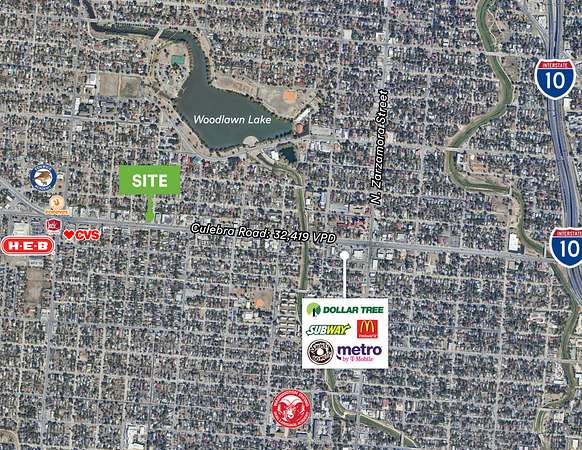 - Located on the hard corner of Culebra Road and Goodrich Avenue in the heart of a densely populated infill area, only 5 blocks from Woodlawn Lake.
