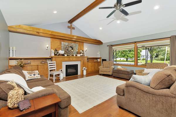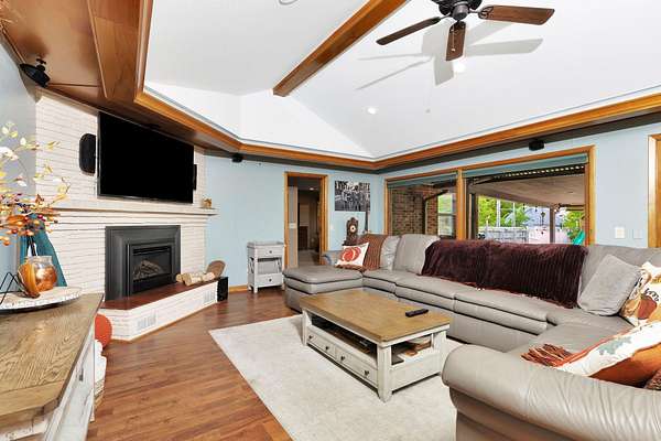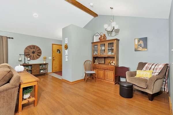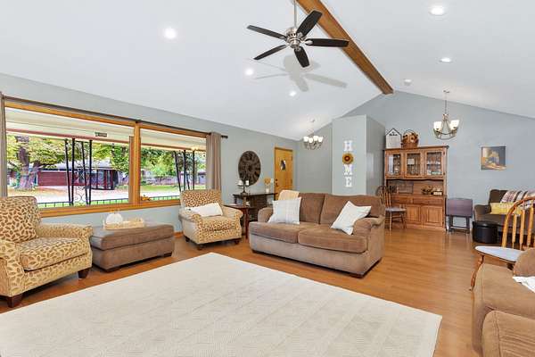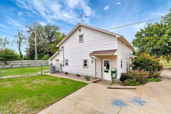 Once-in-a-lifetime opportunity on 2.75 Acres in Augusta! Experience the best of both worlds - acreage living right in town! This charming home sits on 2.75 acres with paved access, offering plenty of space to park extra vehicles, an RV, or even start that garden you've always wanted. Move-in ready and full of character, this spacious 3,090 sq ft home features three large bedrooms, 2.5 baths, and an abundance of storage space throughout. The living room is bright and welcoming with a vaulted ceiling, original birch woodwork, and an electric fireplace that creates a cozy, timeless atmosphere. The family room provides even more space to gather and includes its own gas fireplace plus access to the fenced backyard - perfect for entertaining or relaxing. You'll love the two dining areas, ideal for both casual meals and special occasions and the built in birch cabinetry to showcase special keepsakes or family photos. The kitchen offers solid surface counter space, timeless and original Geneva brand metal cabinetry in perfect condition, and room to make it your own. The half basement, accessed from the garage adds even more flexibility and plenty of space for a workshop, hobby area, or additional storage. An oversized attached two-car garage provides easy access to the home, while the detached outbuilding offers exceptional versatility - ideal for a workshop, office, studio, or hobby space. The upstairs loft area provides even more storage options. If you own your own business and have vehicles or equipment to store, this property will provide the accommodations! Outside, the remaining acreage includes a carport and open space ready for your personal touch - express your passions for gardening, recreation, or future projects with extra acreage to do your thing. This is a rare find - a property that offers privacy, room to grow, and small-town charm all in one convenient Augusta location! Hot Tub on back patio and Refrigerator do not convey with the home. Also, the large carport does not convey, but the smaller carport stays with the home.