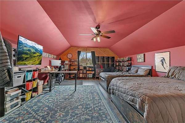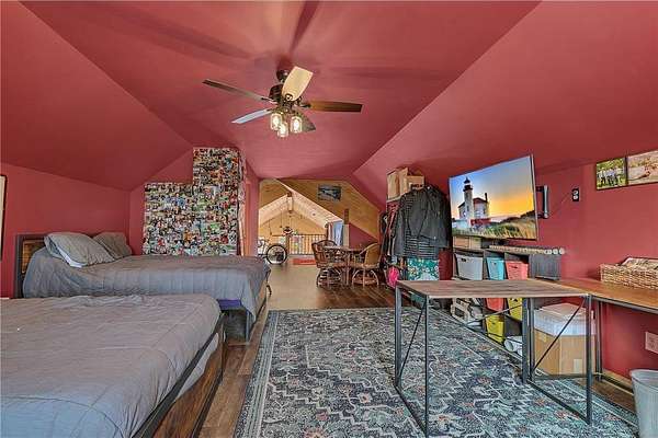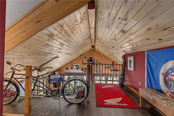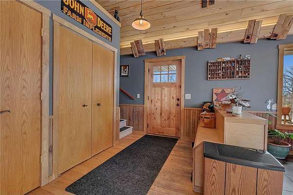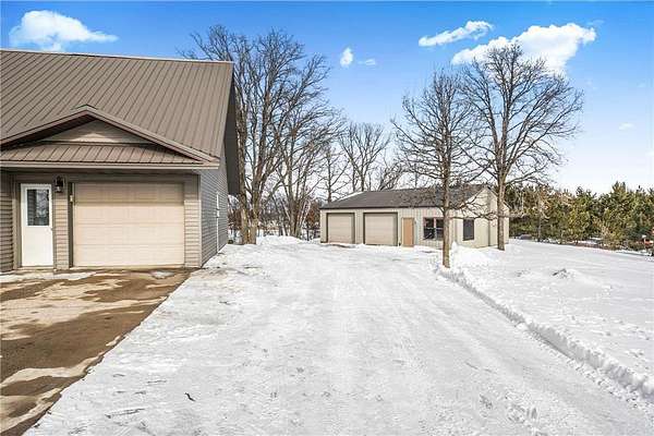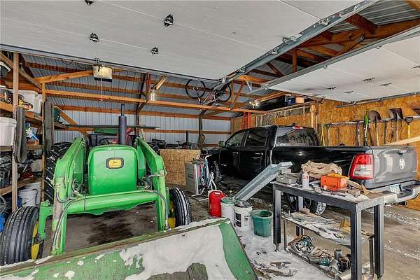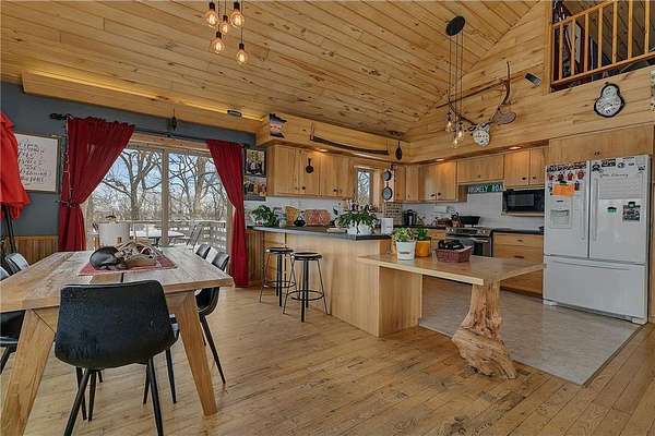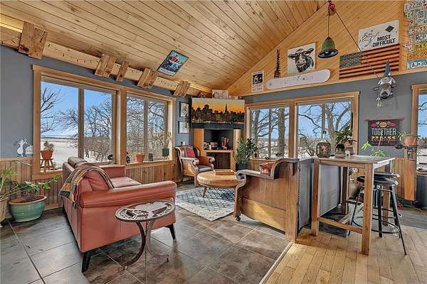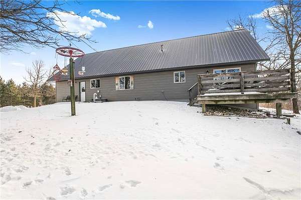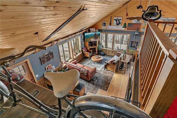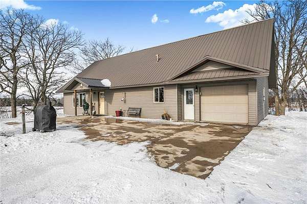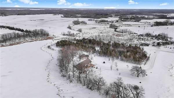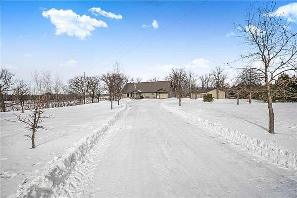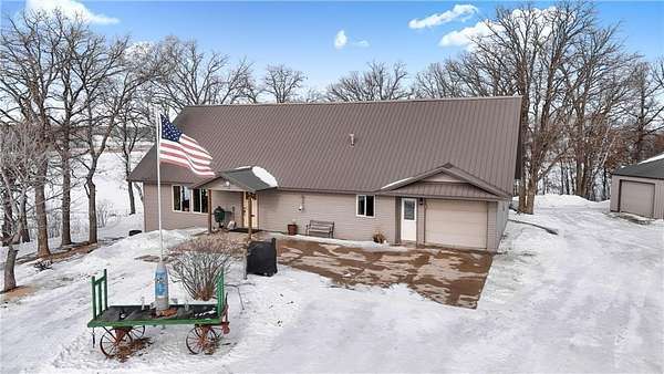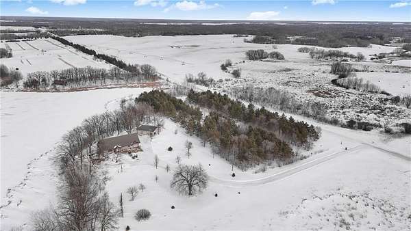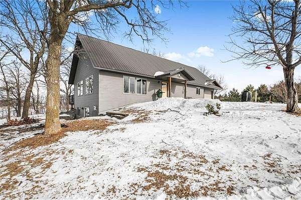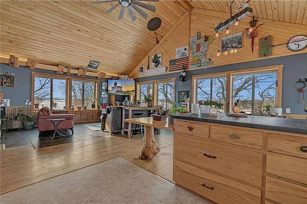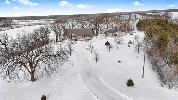 Tucked away at the end of a winding, private driveway, this stunning 3-bedroom, 4-bath home offers peaceful country living on 10.25 picturesque acres with a pond as your backyard centerpiece. Built in 2002 and offering 3,136 finished square feet, this property blends warmth, space, and thoughtful design throughout. The open-concept main level features a vaulted ceiling over the kitchen, dining, and living areas, highlighted by hardwood floors and tongue-and-groove wood ceilings. The kitchen showcases unique wood accents, including a one-of-a-kind raw wood pedestal island, and flows seamlessly to a large deck through an oversized patio door--perfect for soaking in views of the private backyard and pond. The main-floor primary bedroom includes a spacious walk-in closet with a large window for natural light and a convenient 1/2 bath. Main-level laundry and a full bathroom adds everyday ease. Upstairs, you'll find an impressive 30x16 loft-style bedroom with its own 1/2 bath--ideal as a bedroom, home office, or flex space. The walkout lower level is designed for entertaining and relaxing, featuring an additional bedroom, 3/4 bathroom, cozy fireplace, wet bar, and family room with direct access to the backyard and pond through the walk-out patio door. An additional outbuilding/garage/workshop provides excellent storage and workspace options, rounding out this exceptional property. If you're looking for privacy, craftsmanship, and room to roam--this one checks all the boxes. Set up your private showing today!