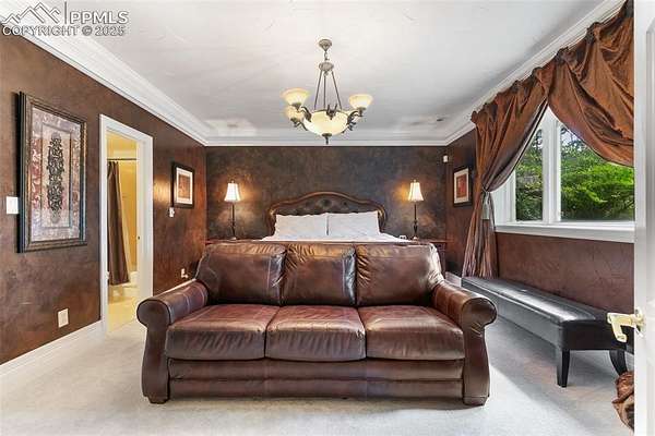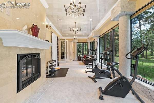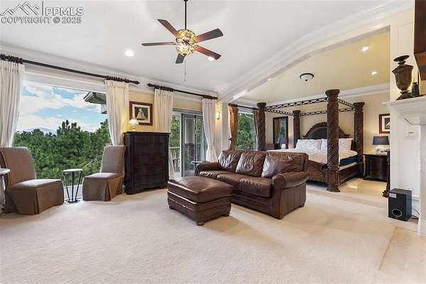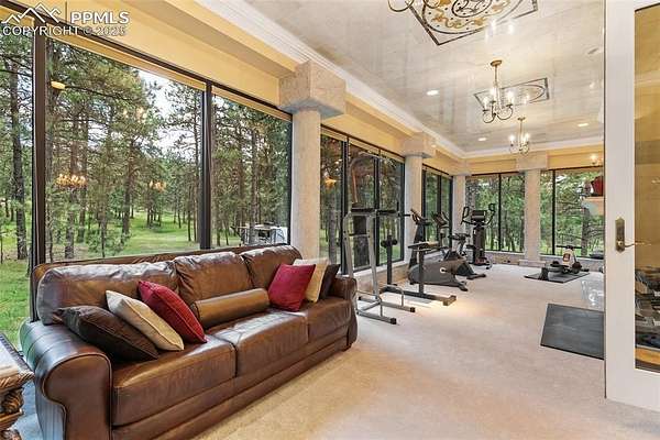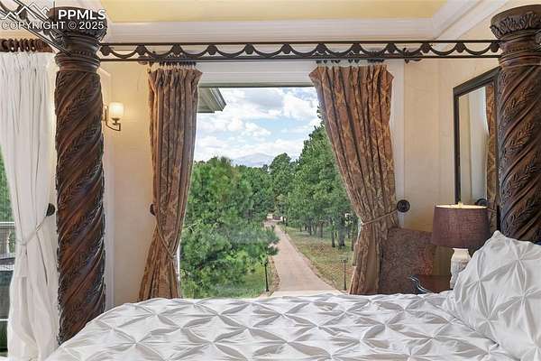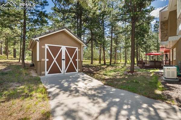 Set on nearly 3 acres of pristine forest, this exquisite home is a true gem-an extraordinary blend of old-world craftsmanship and timeless European style, gracefully nestled amid the breathtaking beauty of the Colorado mountains. Homes of this caliber-where enduring strength meets refined elegance-are increasingly rare in today's modern architecture. From the moment you step inside, this residence inspires awe. Designed to embrace your loved ones in comfort and security, it's a sanctuary of sophistication. Offered optionally with a complete suite of luxury furnishings curated to match its distinguished character, the home is move-in ready as a private retreat or an exceptional legacy property. Begin each day bathed in mountain light, sipping coffee on your private balcony as the grandeur of Pikes Peak awakens your spirit and invites the promise of new possibilities. Each of the home's generously sized bedrooms features a private en-suite bath and ample closet space. The sunroom, surrounded by tranquil forest views, offers a peaceful space for exercise, and can easily transform into a 5th bedroom or private studio. On the lower level, a private guest suite with its own bath is perfectly situated for visitors. This space is built for entertainment and connection, complete with a state-of-the-art home theater, full wet bar, and expansive game room-an ideal setting for hosting family and friends. Thoughtful upgrades and amenities that enhance everyday living: *On a quiet Cul-de-sac *Massive 3-car garage *All-new appliances *Pella windows *Solar panels and a whole-home generator *Water softener, humidifier, and air filtration systems *Upgraded insulation and gutter guards *Durable concrete tile roof *Hot tub, 5 fireplaces, firepits, and a fully wired detached storage building *Safe room with fire door A property like this is not simply a home-it's a legacy. Come experience the rare fusion of charm, strength, and modern comfort.