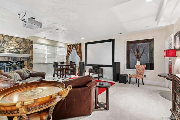 Each of the home’s generously sized bedrooms features a private en-suite bath and ample closet space. The sunroom, surrounded by tranquil forest views, offers a peaceful sanctuary for exercise, and can easily transform into a fifth bedroom or private studio. On the lower level, a private guest suite with its own bath is perfectly situated for visitors. This space is built for entertainment and connection, complete with a state-of-the-art home theater, full wet bar, and expansive game room—an ideal setting for hosting family and friends.